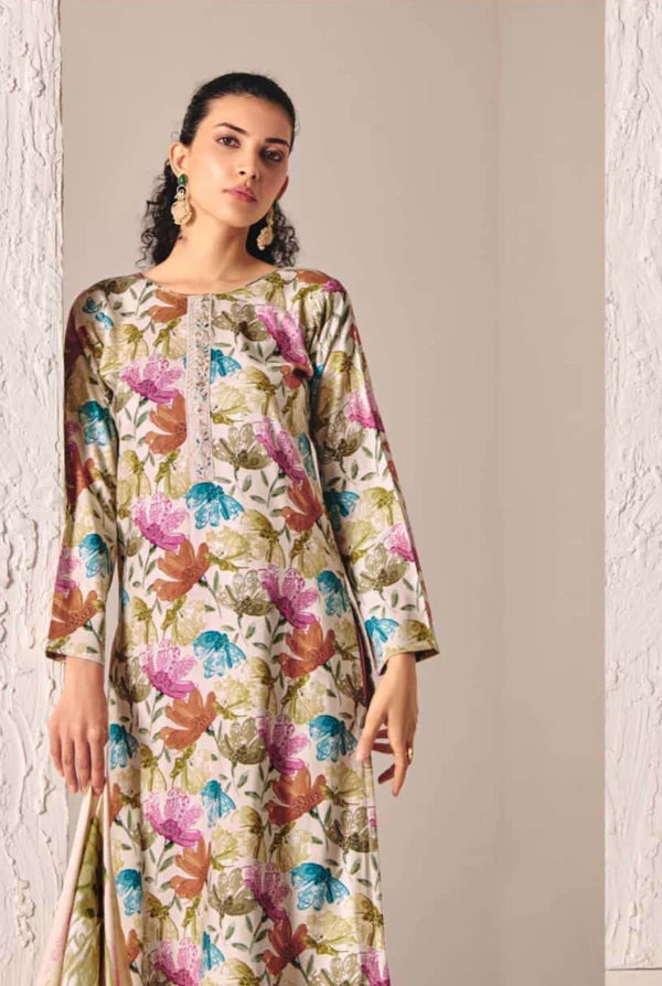 Top : Pure Pashmina Digital Print With Refined Neck And Daman Embroidery