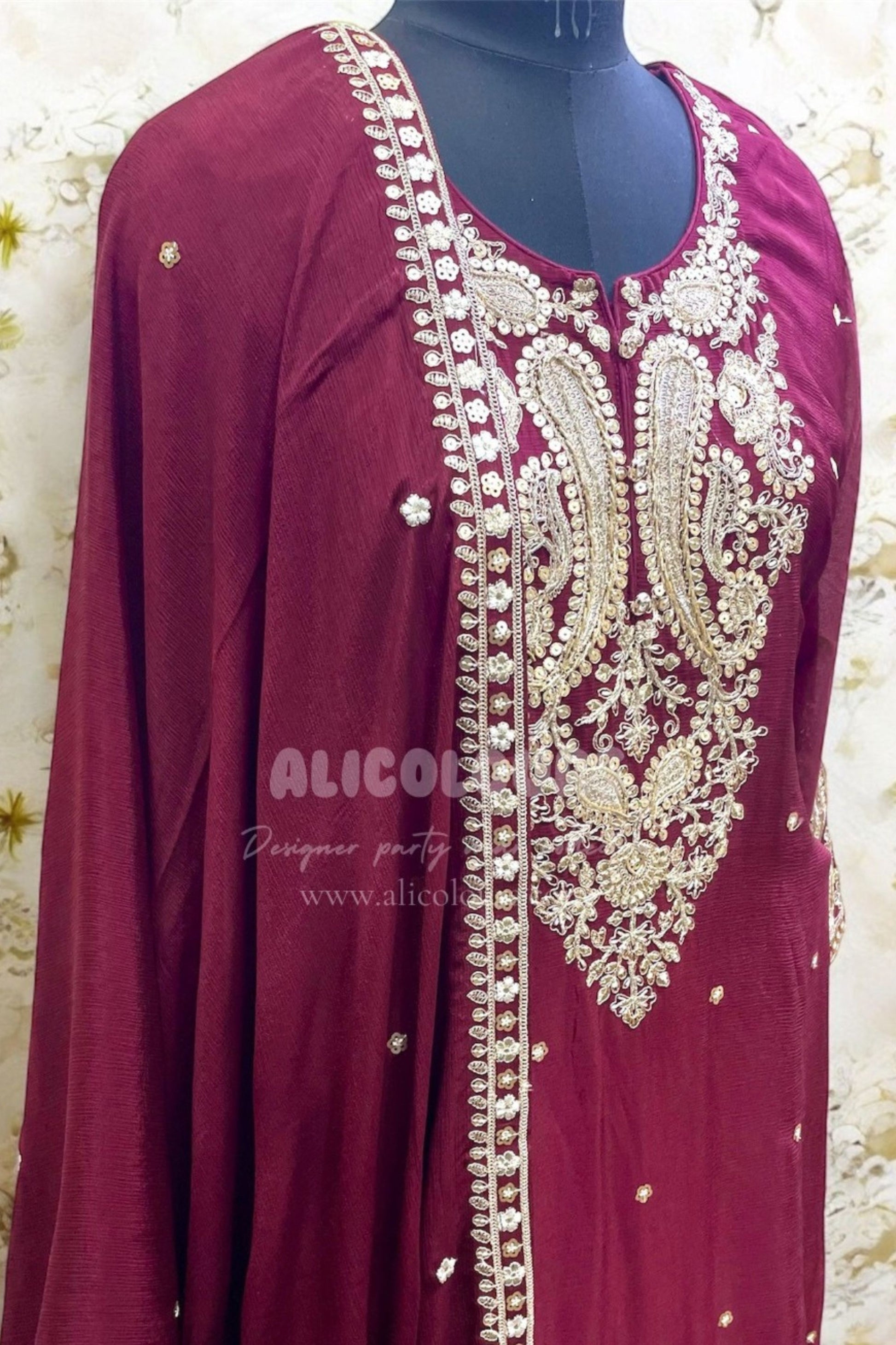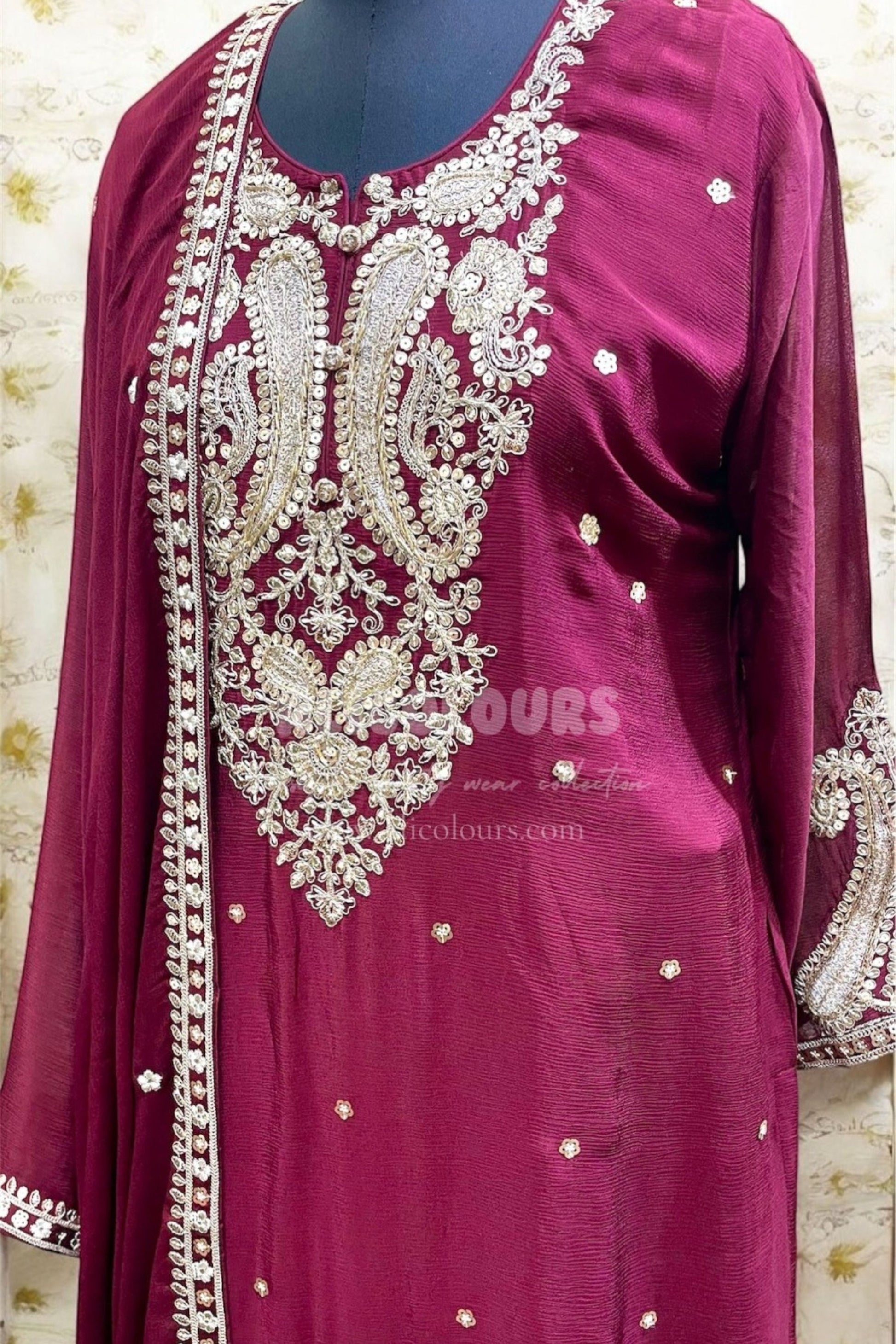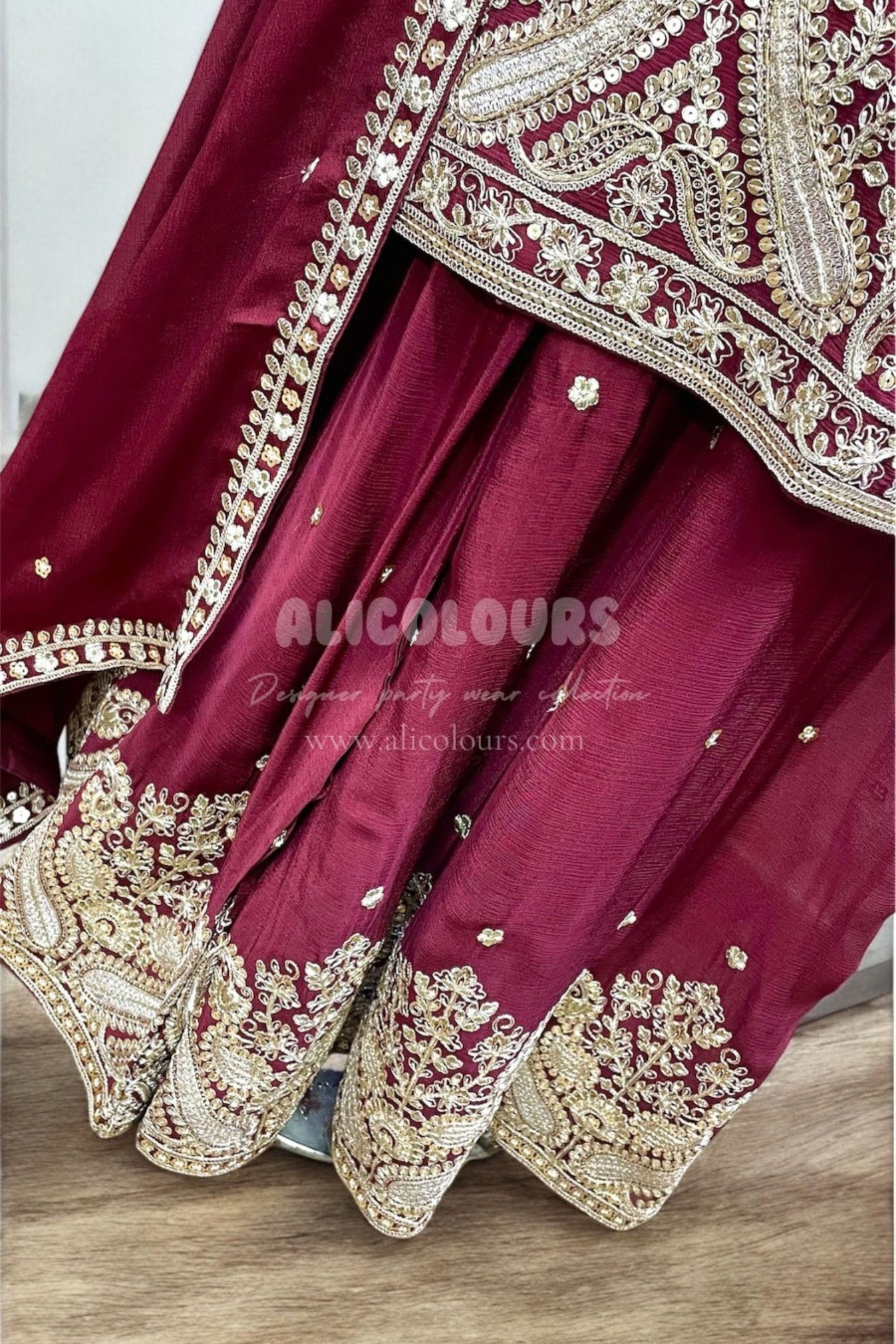 ROYAL MAROON DESIGNER HEAVY EMBROIDERED STITCHED SHARARA SUIT
