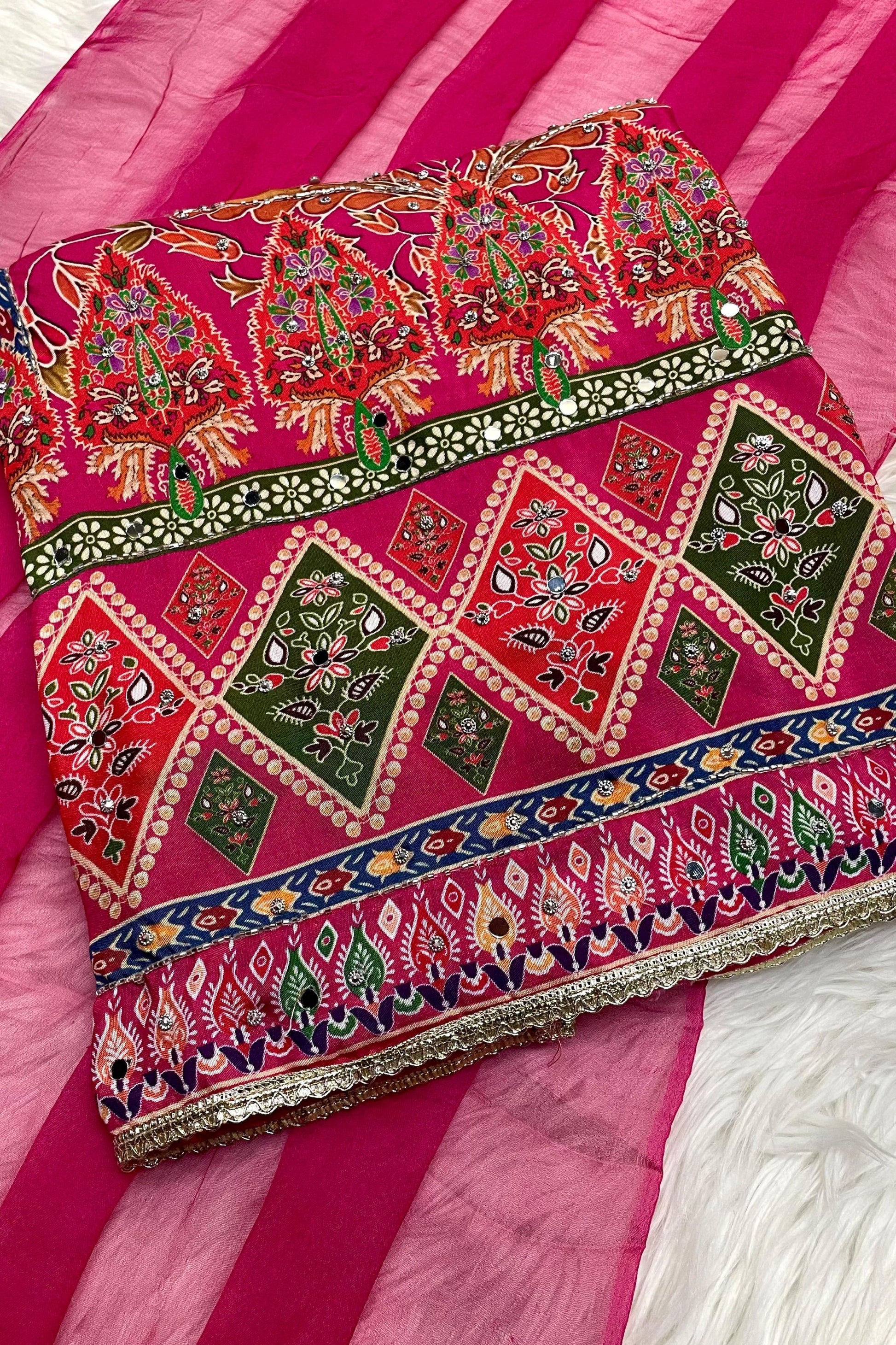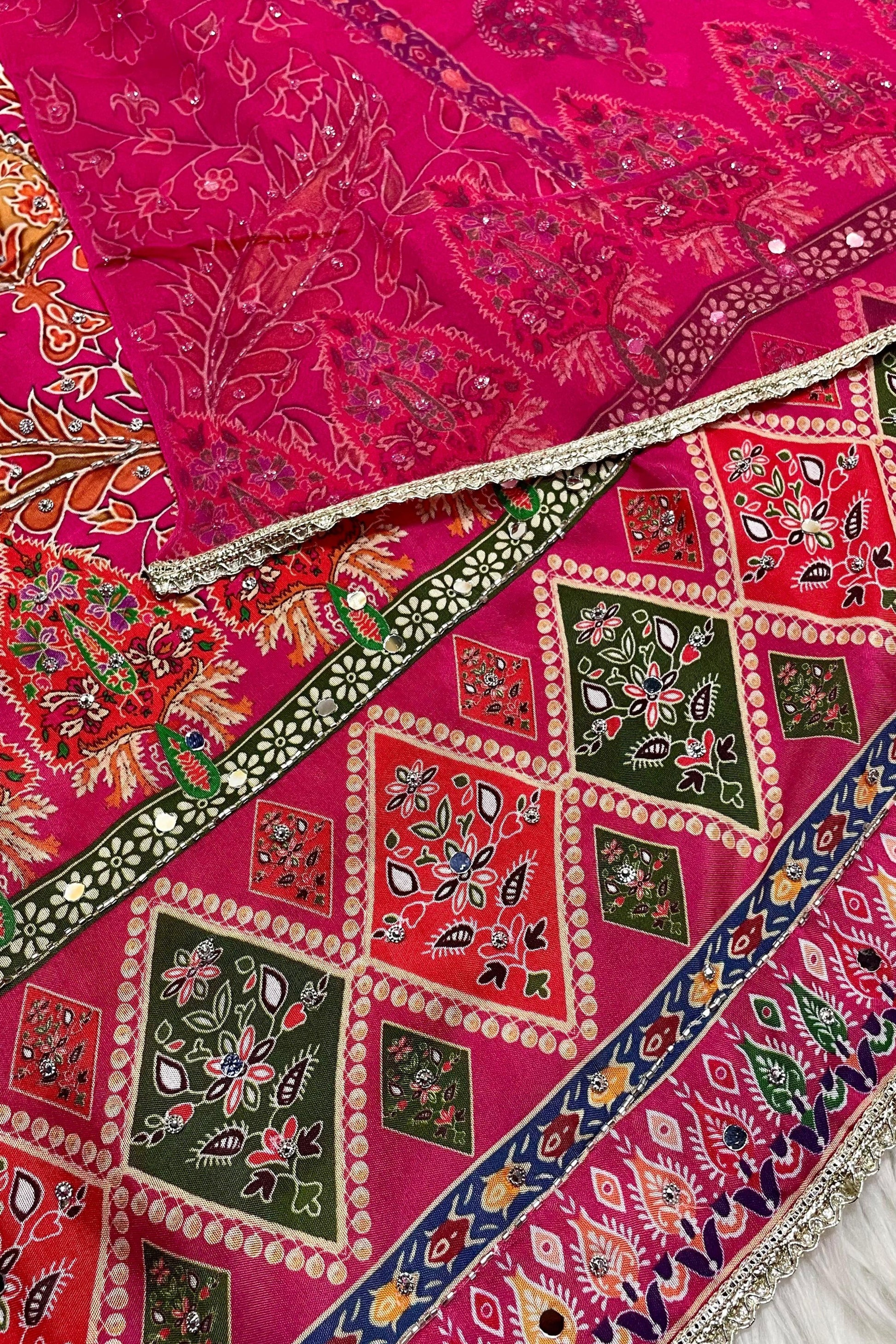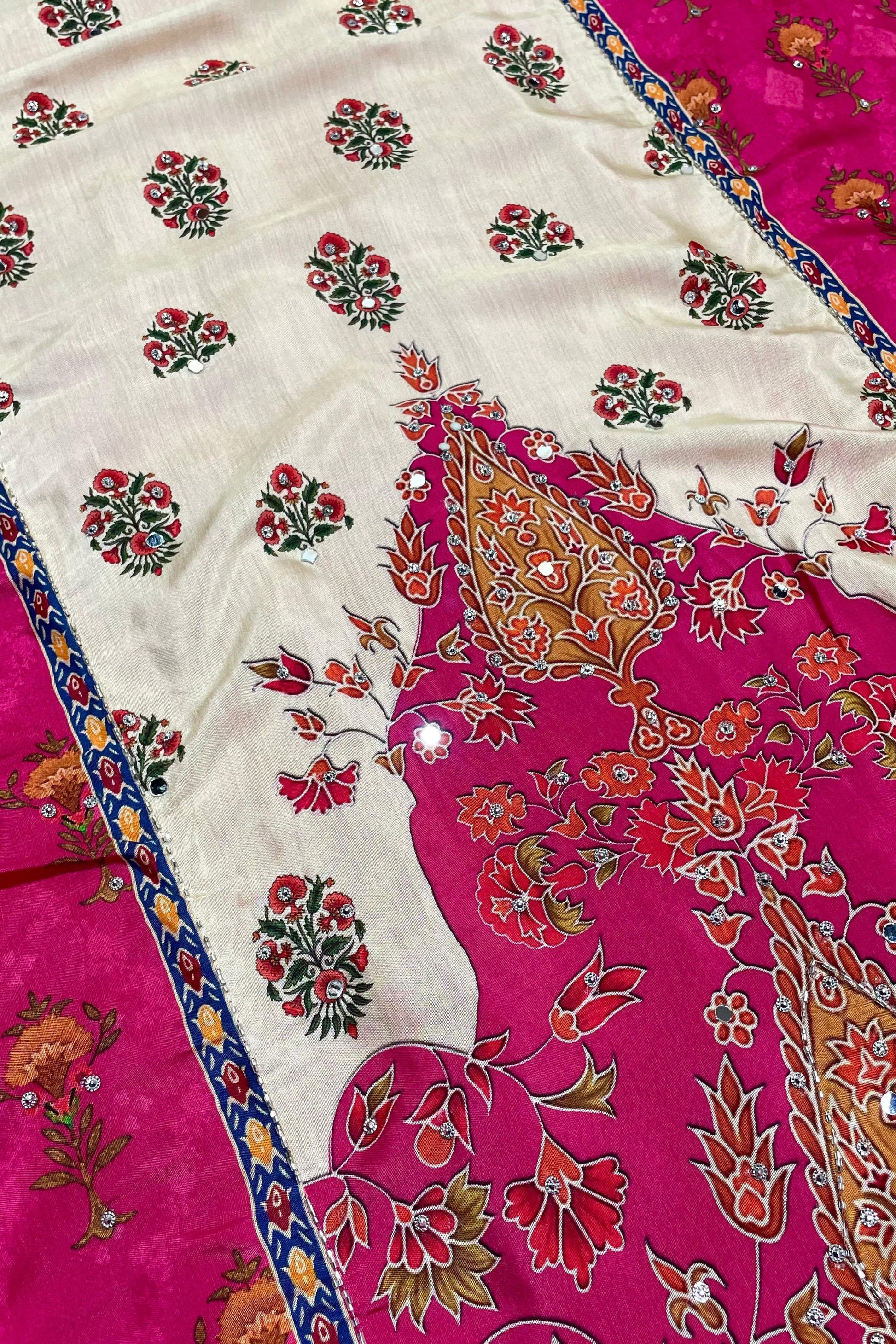 Top : Pure Muslin with Heavy Mirror and Cutdana Handwork with Digital print Shirt
