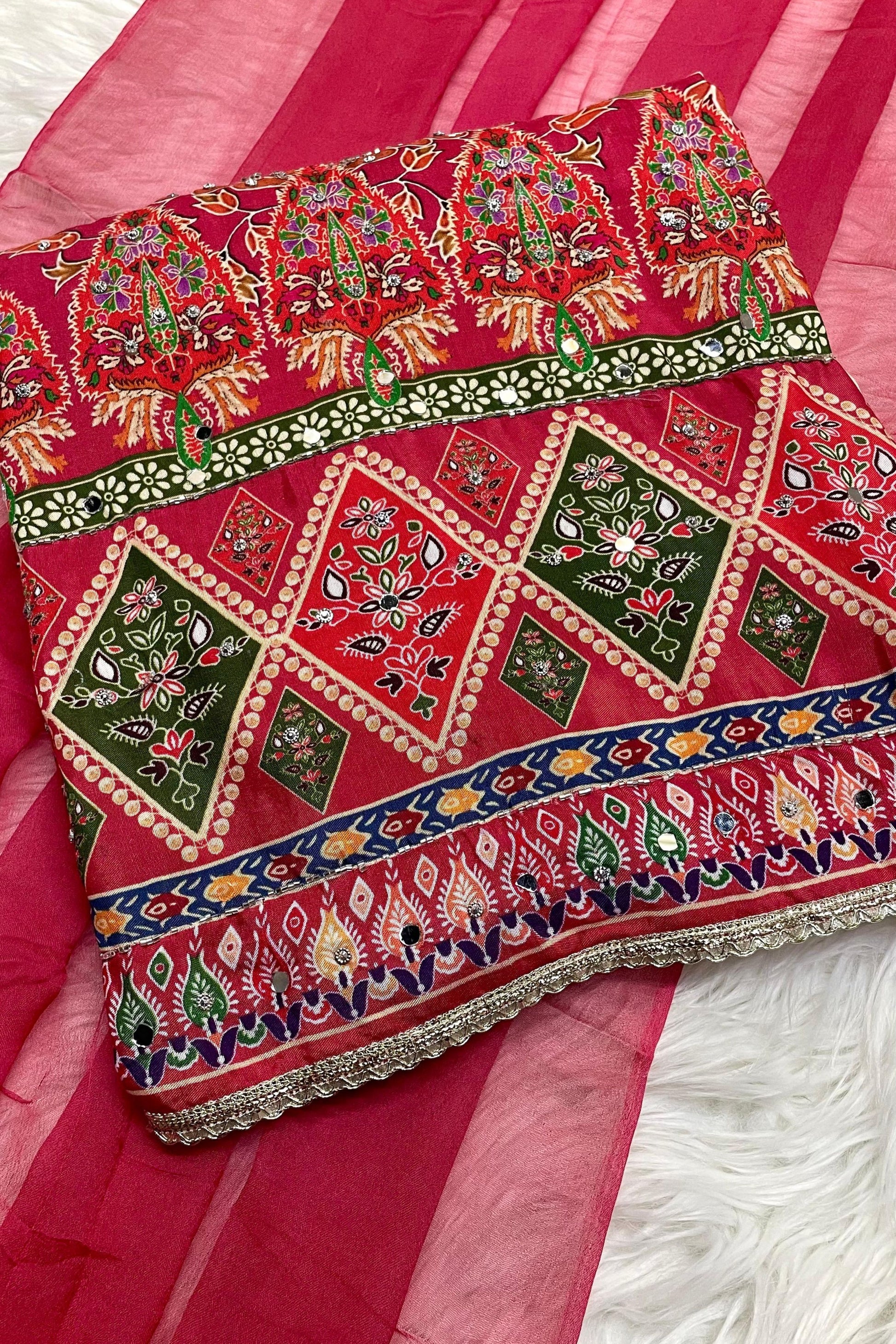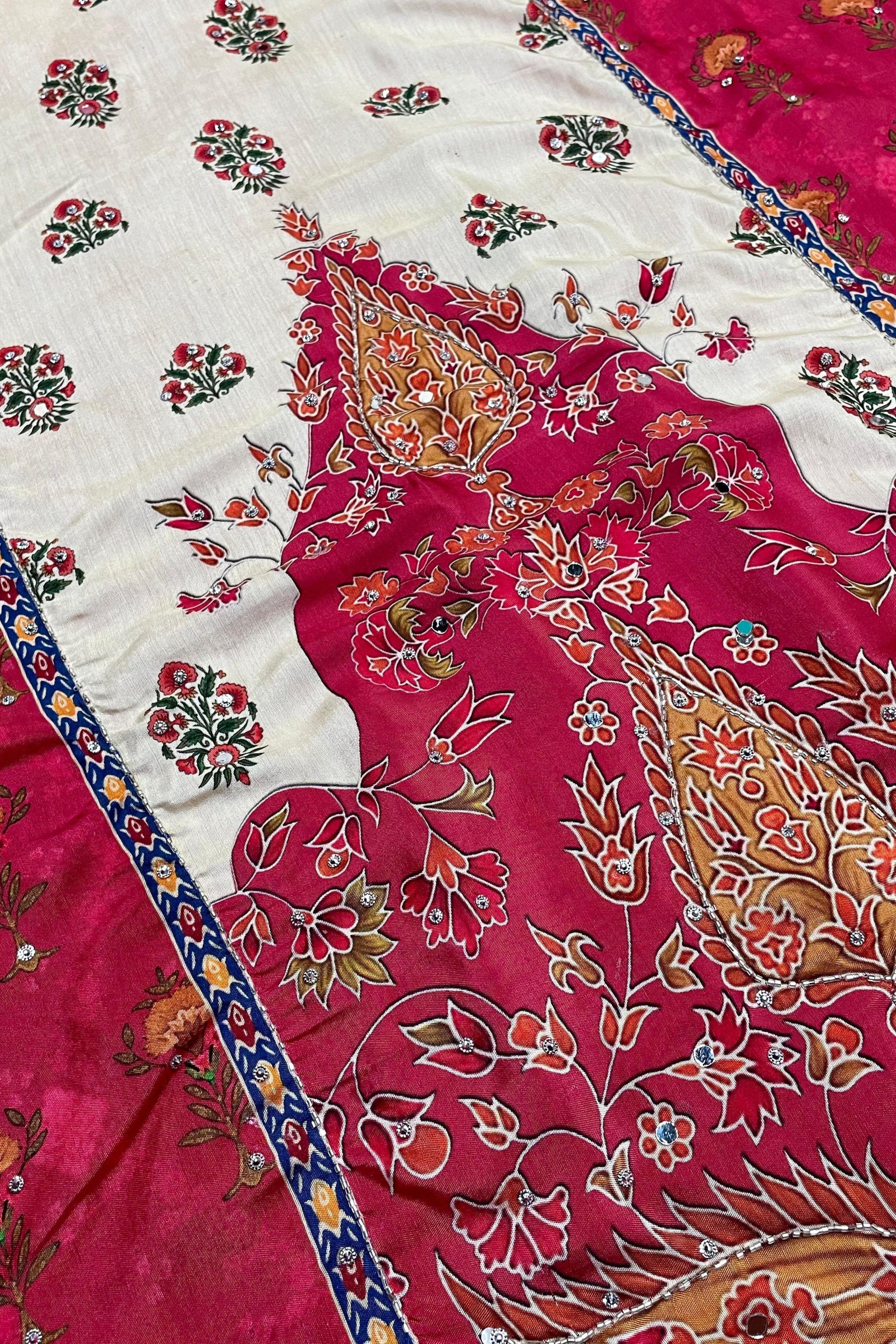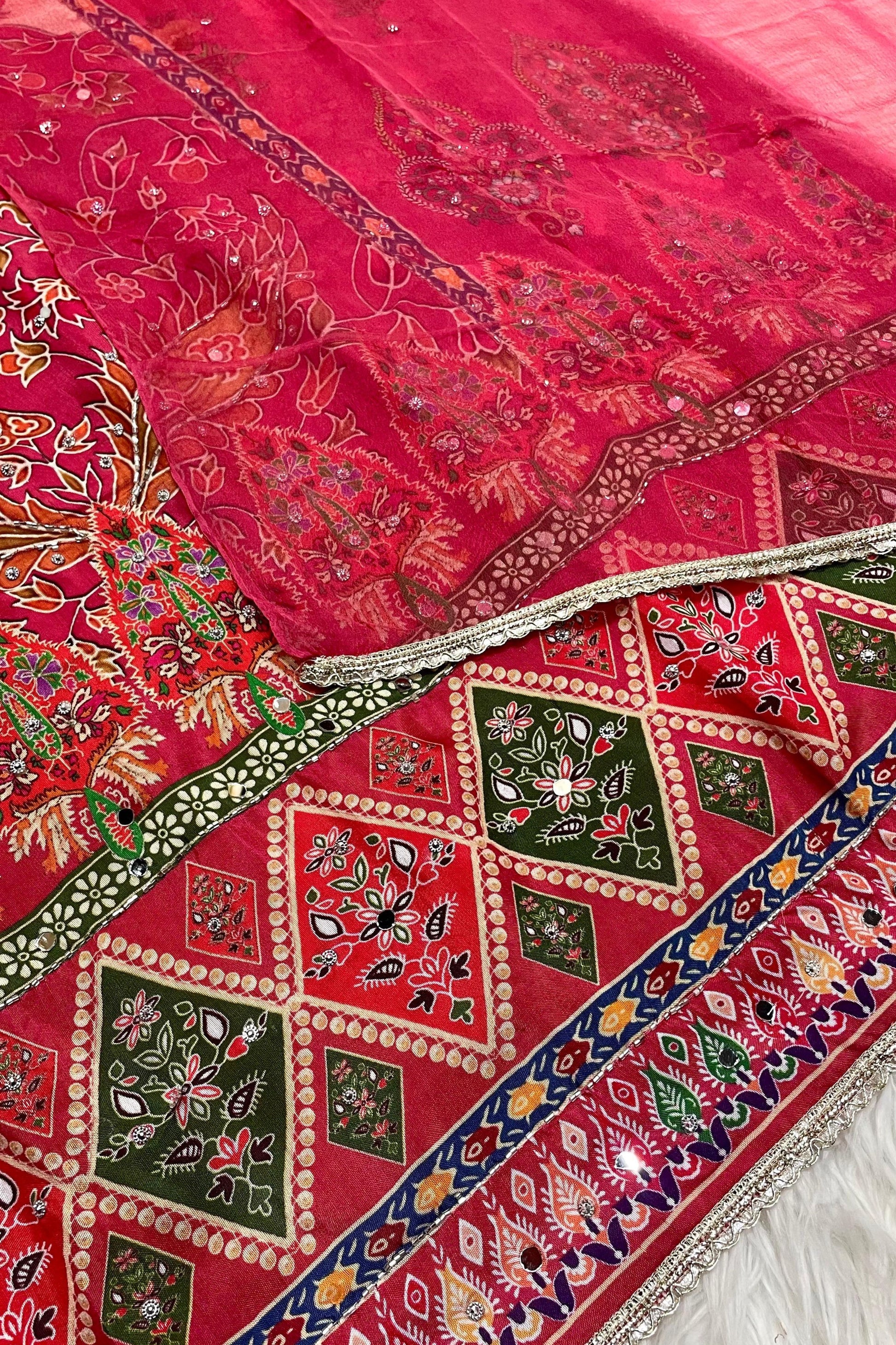 Top : Pure Muslin with Heavy Mirror and Cutdana Handwork with Digital print Shirt