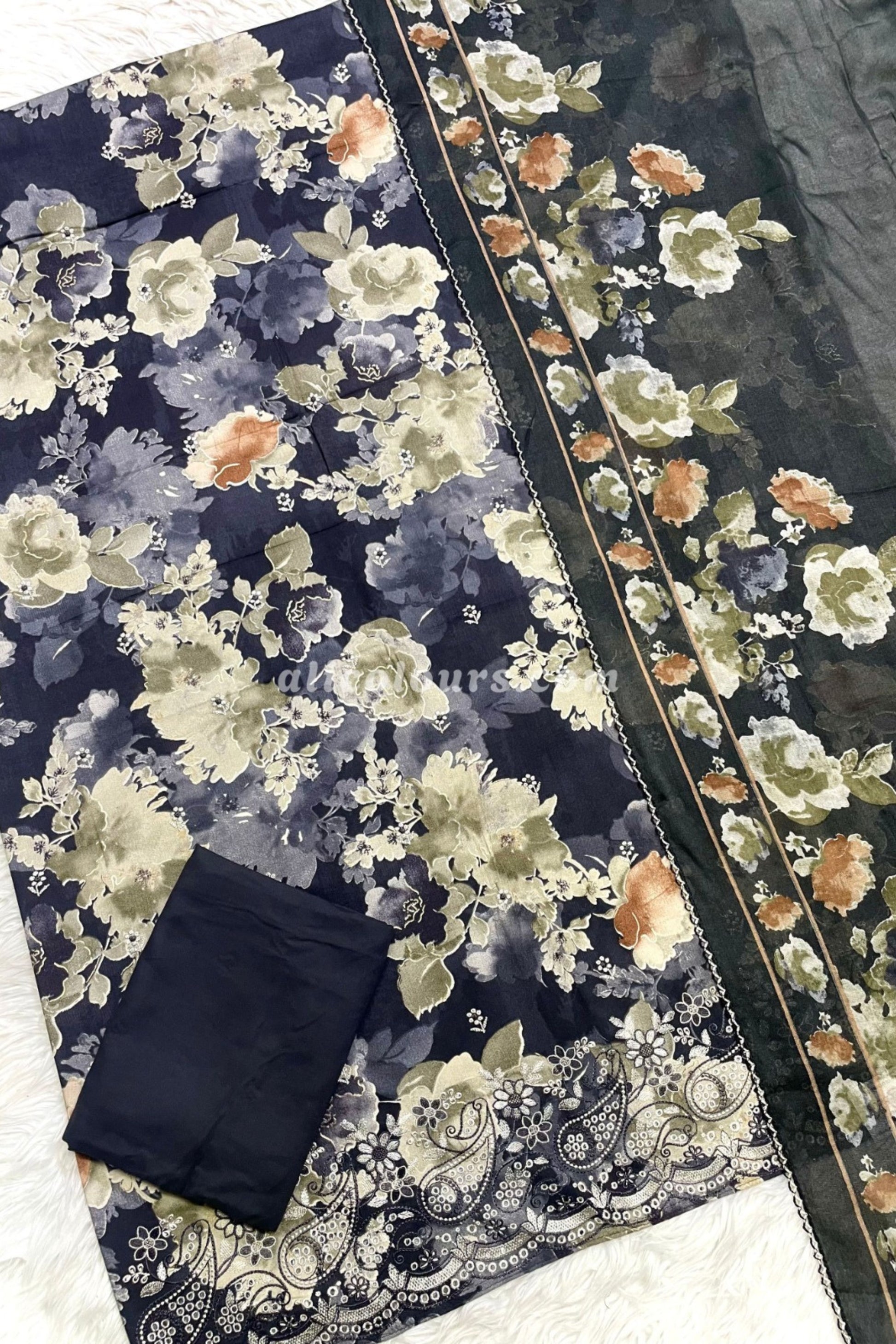 Dupatta : Pure Mal Mal Cotton Dupatta with Beautiful Digital Print and 4 sided lace.