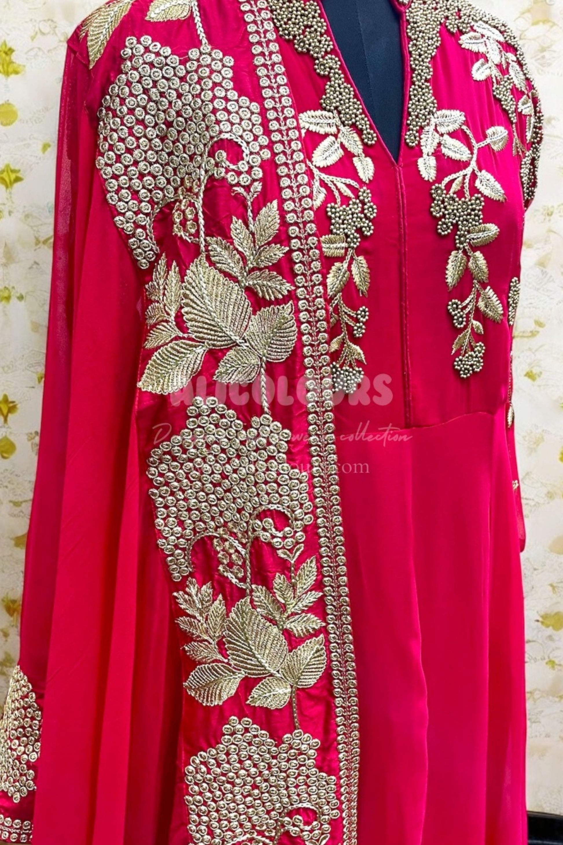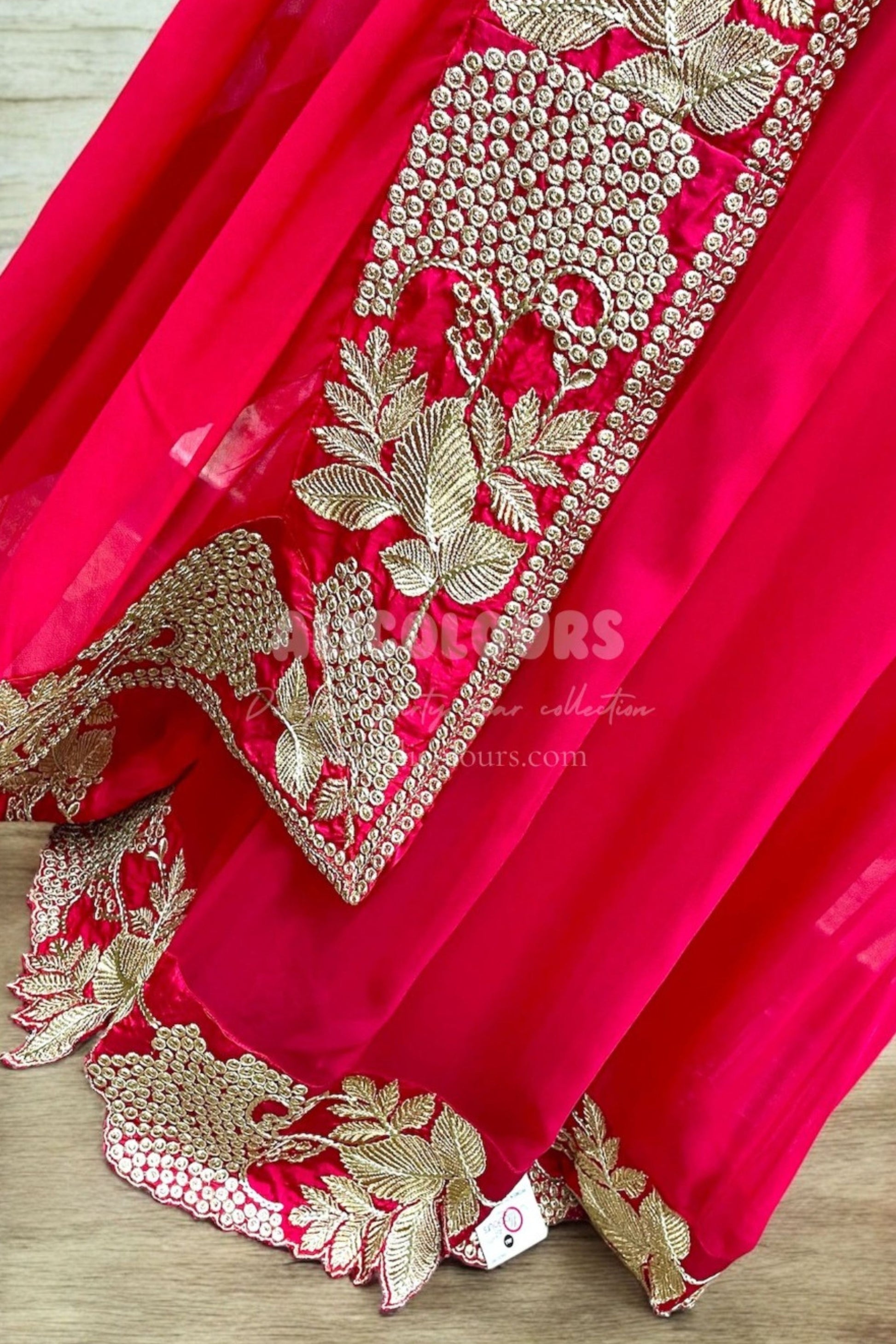 Dupatta : Dupatta of This Dress is Made by Georgette Fabric Which is Also in Ruby Red Colour and 4 Side Tassels. LENGTH = 2.50 METERS.