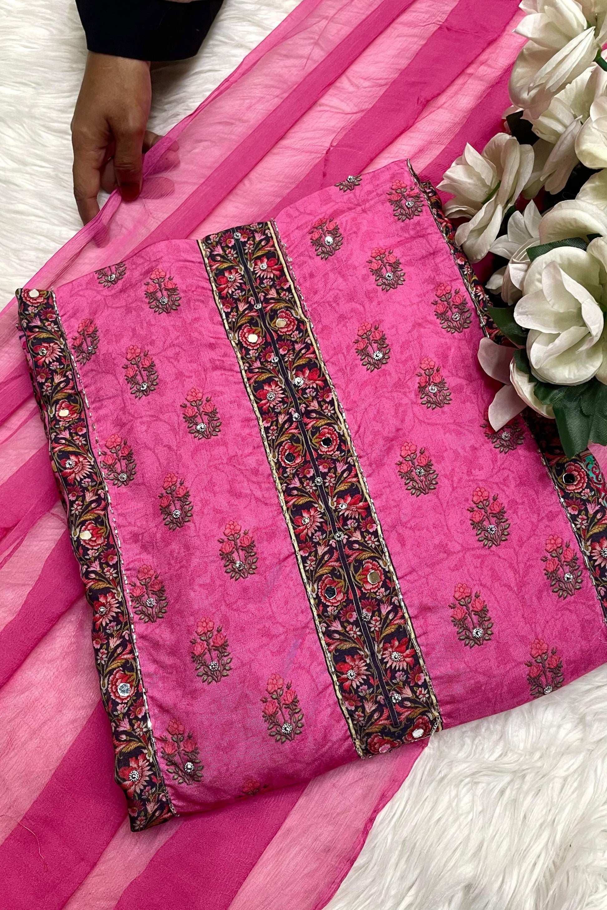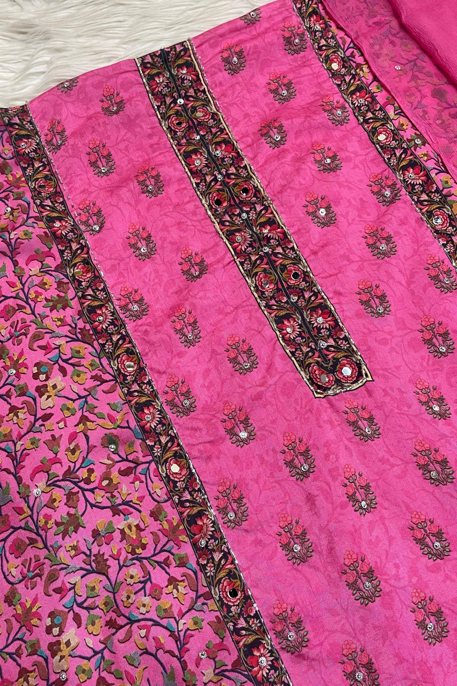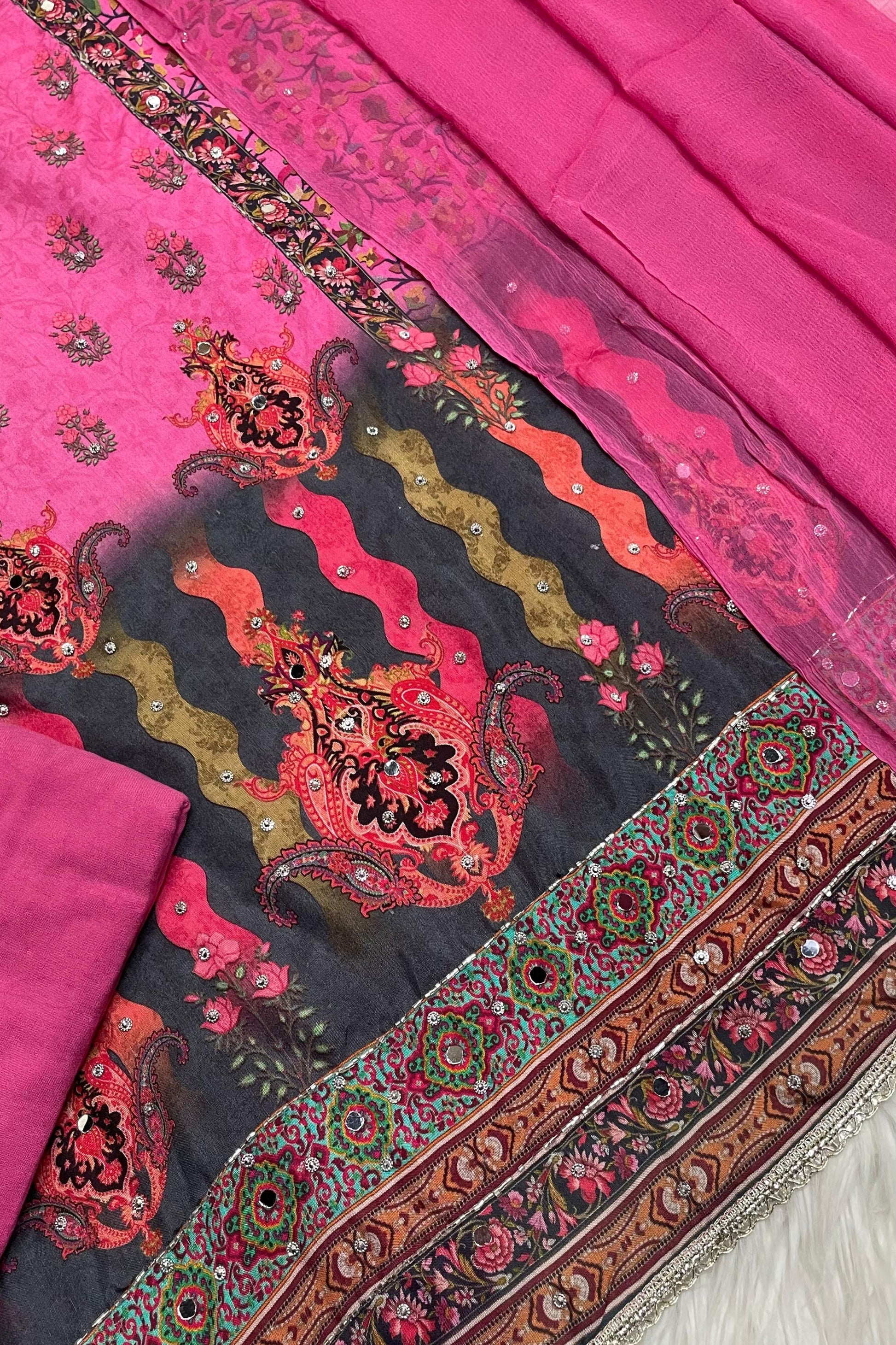 Top : Pure Muslin with Heavy Mirror and Cutdana Handwork with Digital print Shirt