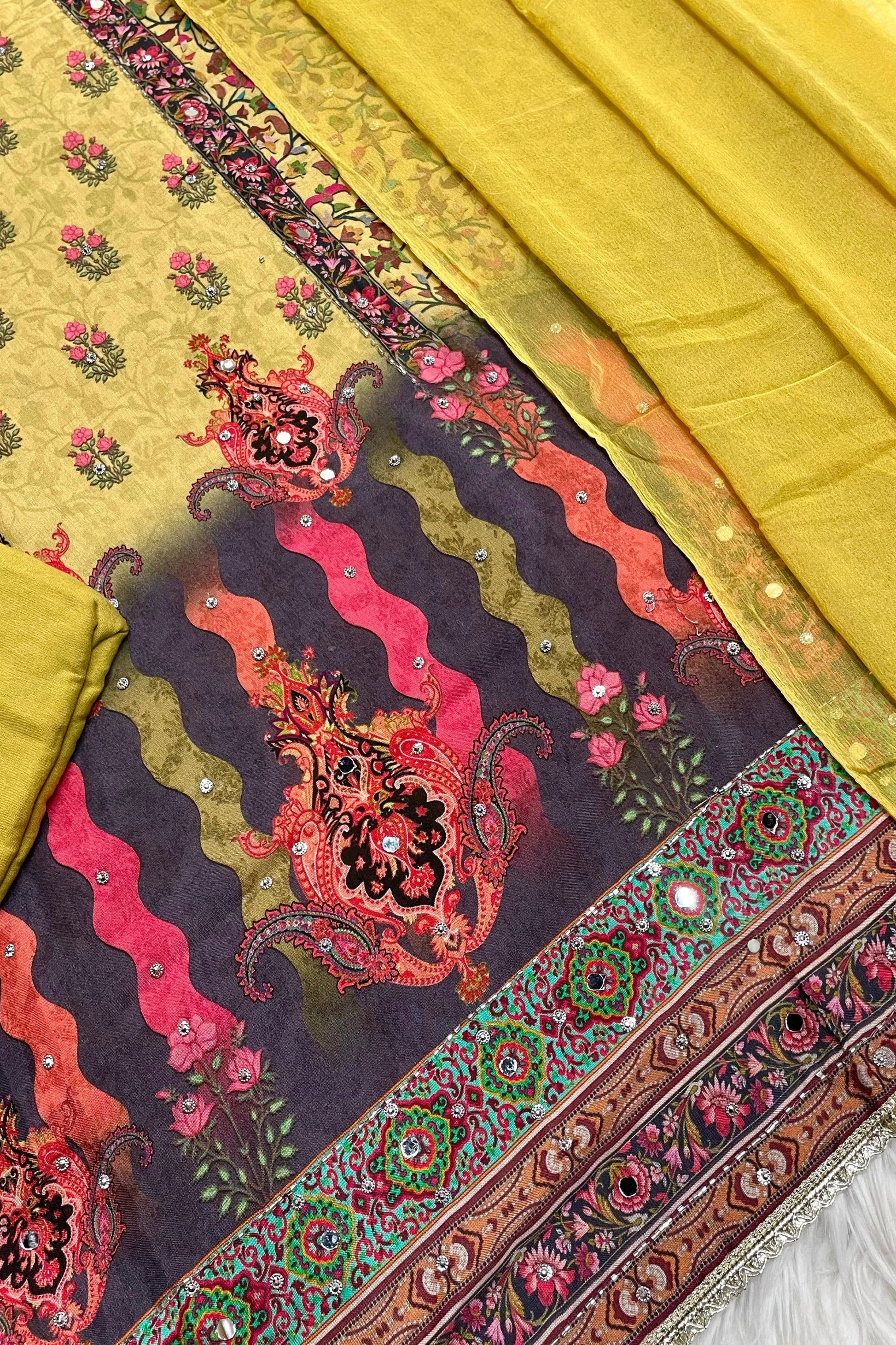 Top : Pure Muslin with Heavy Mirror and Cutdana Handwork with Digital print Shirt