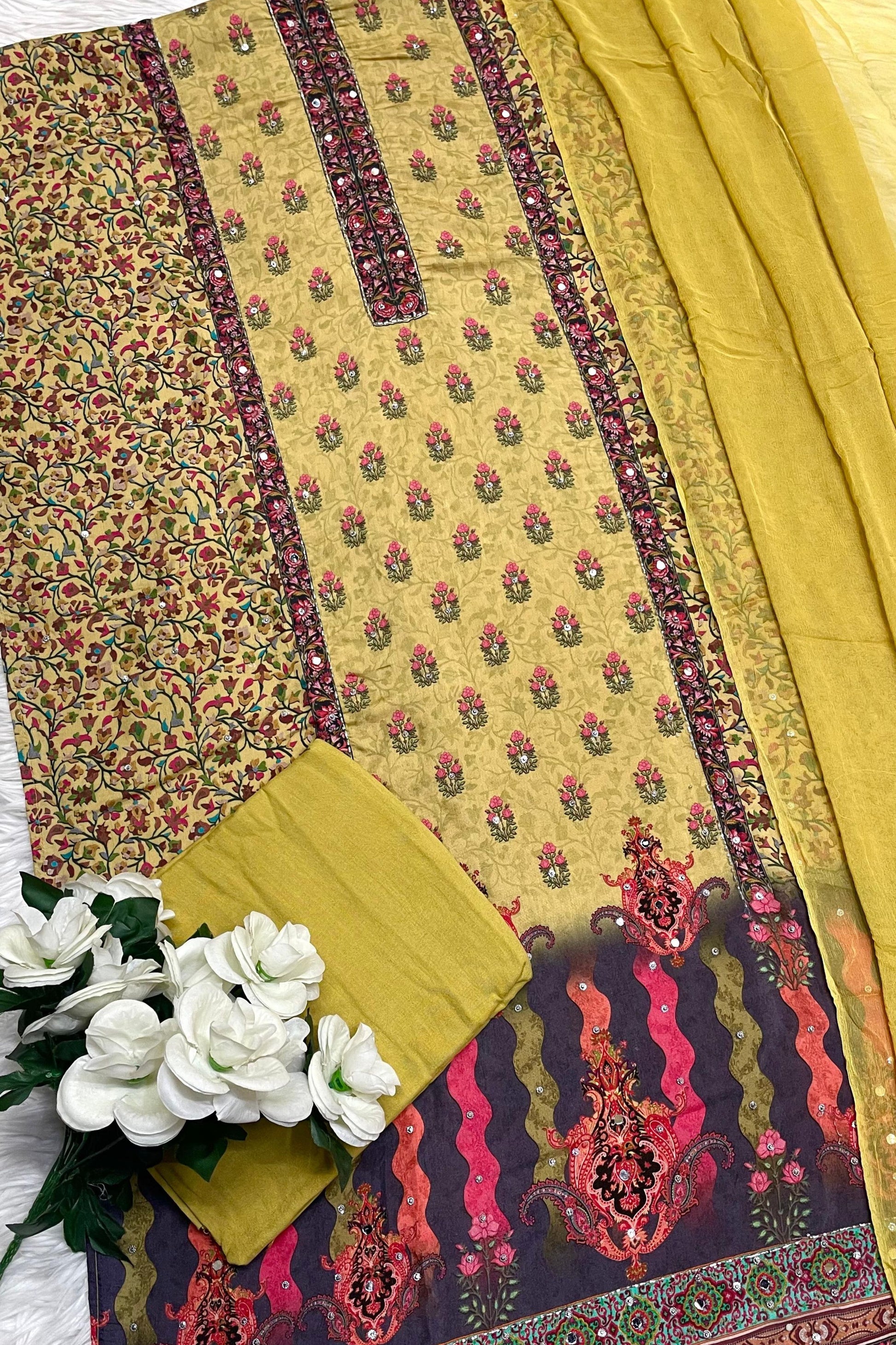 Description : 3 Piece Un-Stitched Collection by Alicolours Comes with :-