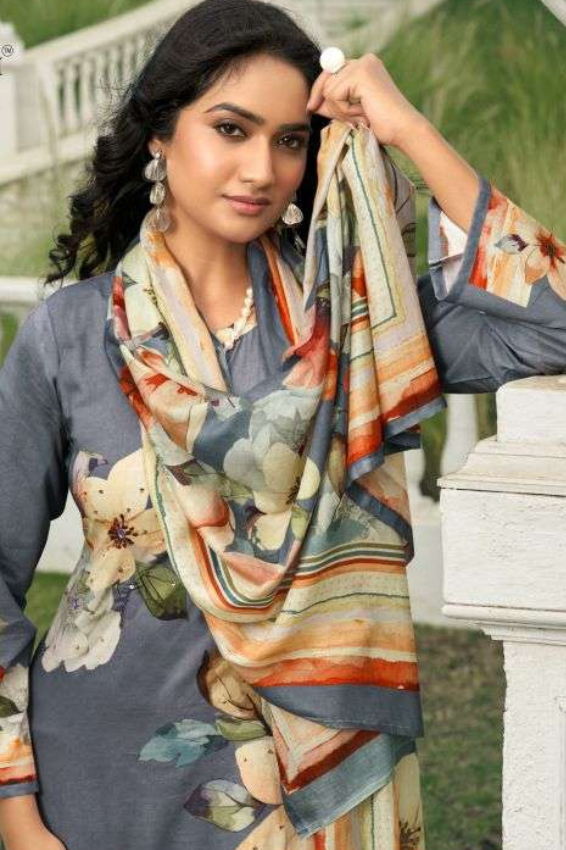 Dupatta : Pure Embroidery Pashmina Digital Printed Dupatta
