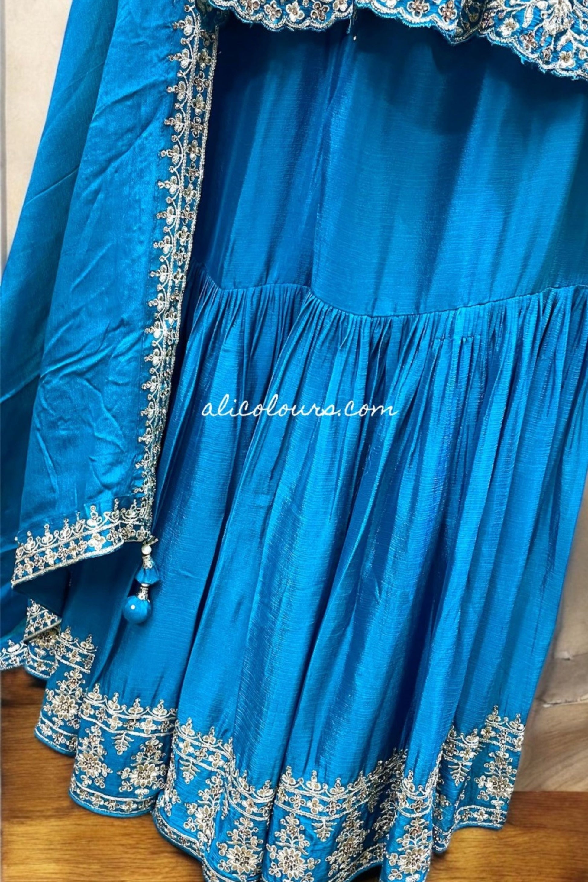 Bottom : Pure Chinon Fully Heavy Embroidery with Heavy Hand Work Gharara Bottom Wear LENGTH = 42 INCHES.