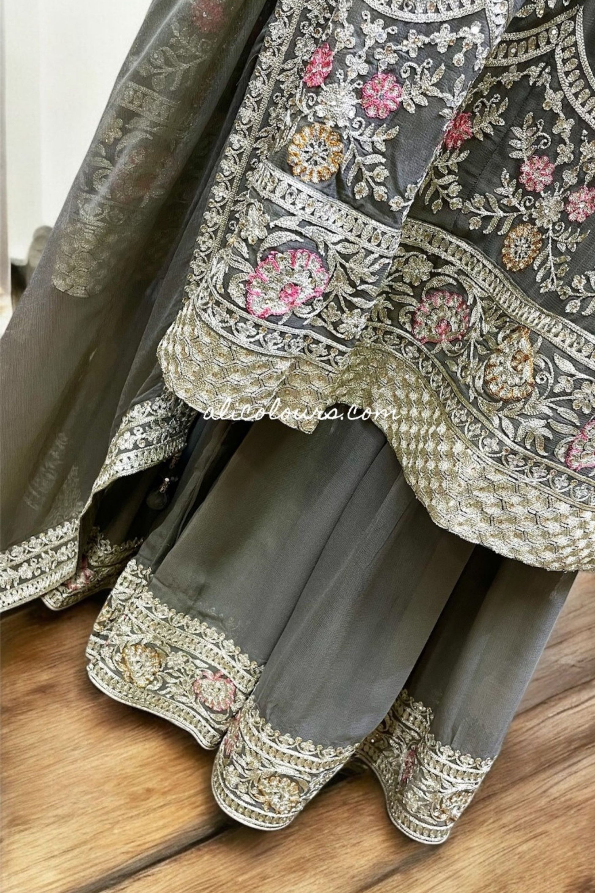 Description : 3 Piece Fully Stitched Long Gharara Set by Alicolours comes with :-