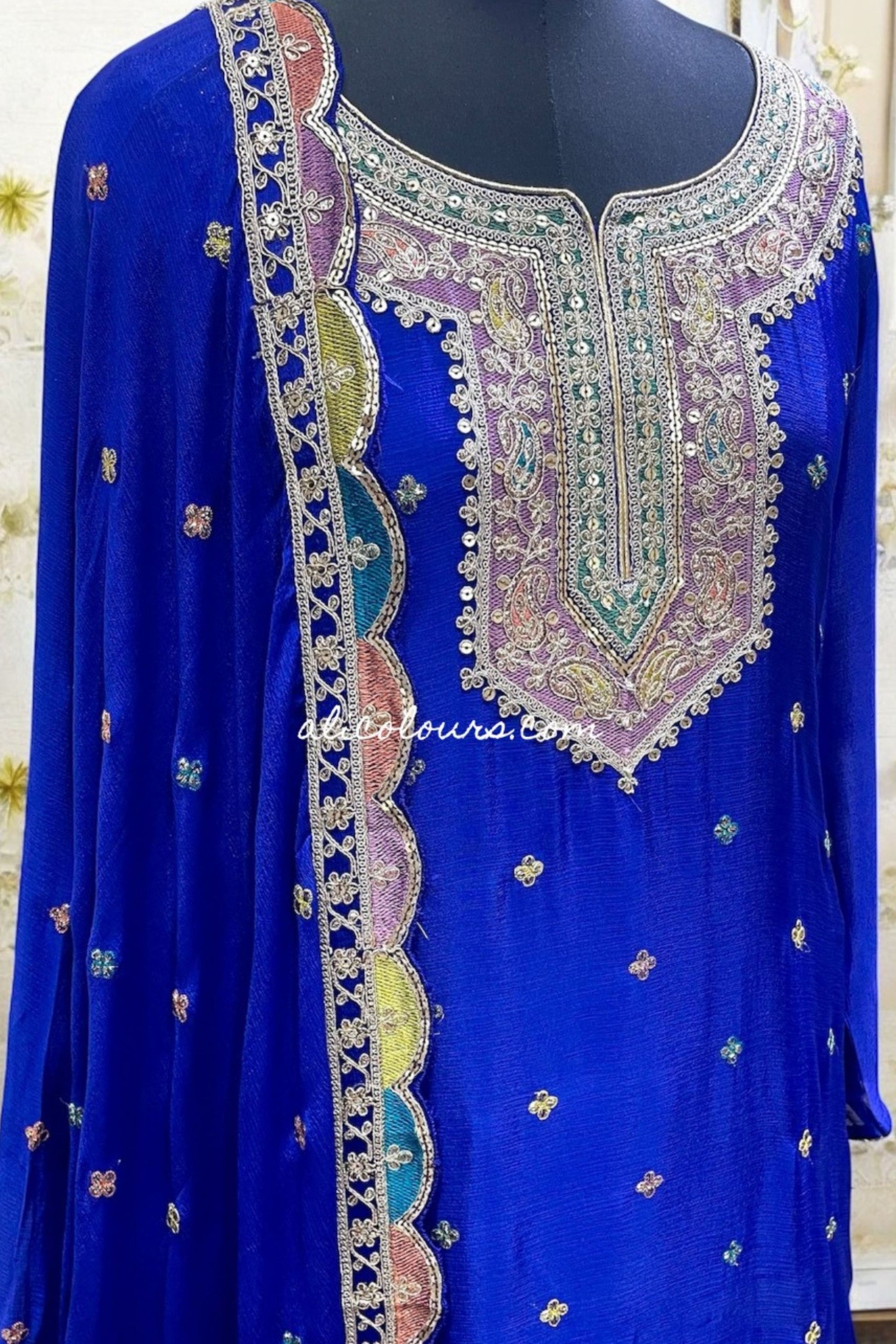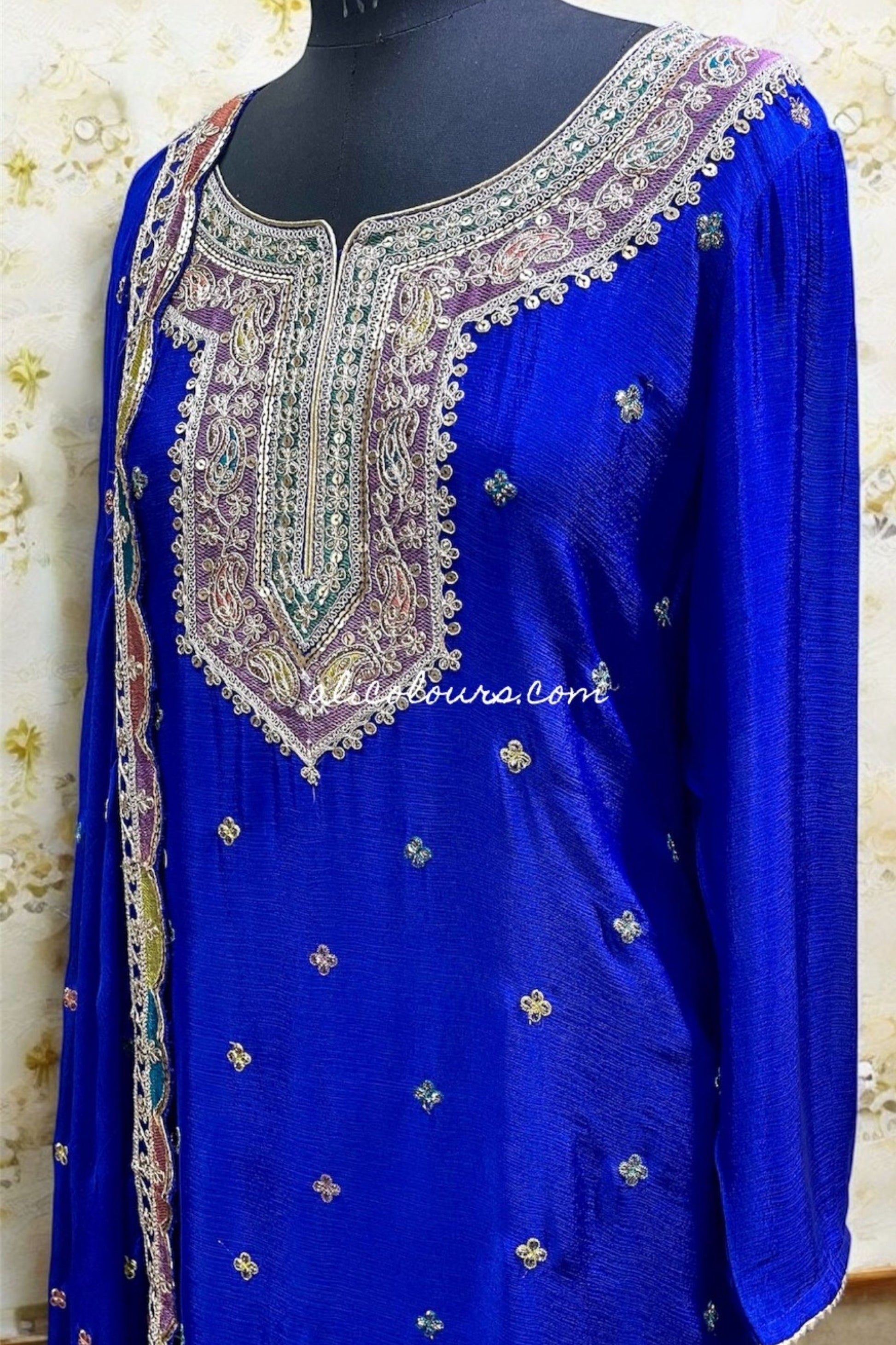 Dupatta : Fully Embroidered Chinon Dupatta with Hand Work with 4 sided Tassels Dupatta.LENGTH = 2.50 METERS.