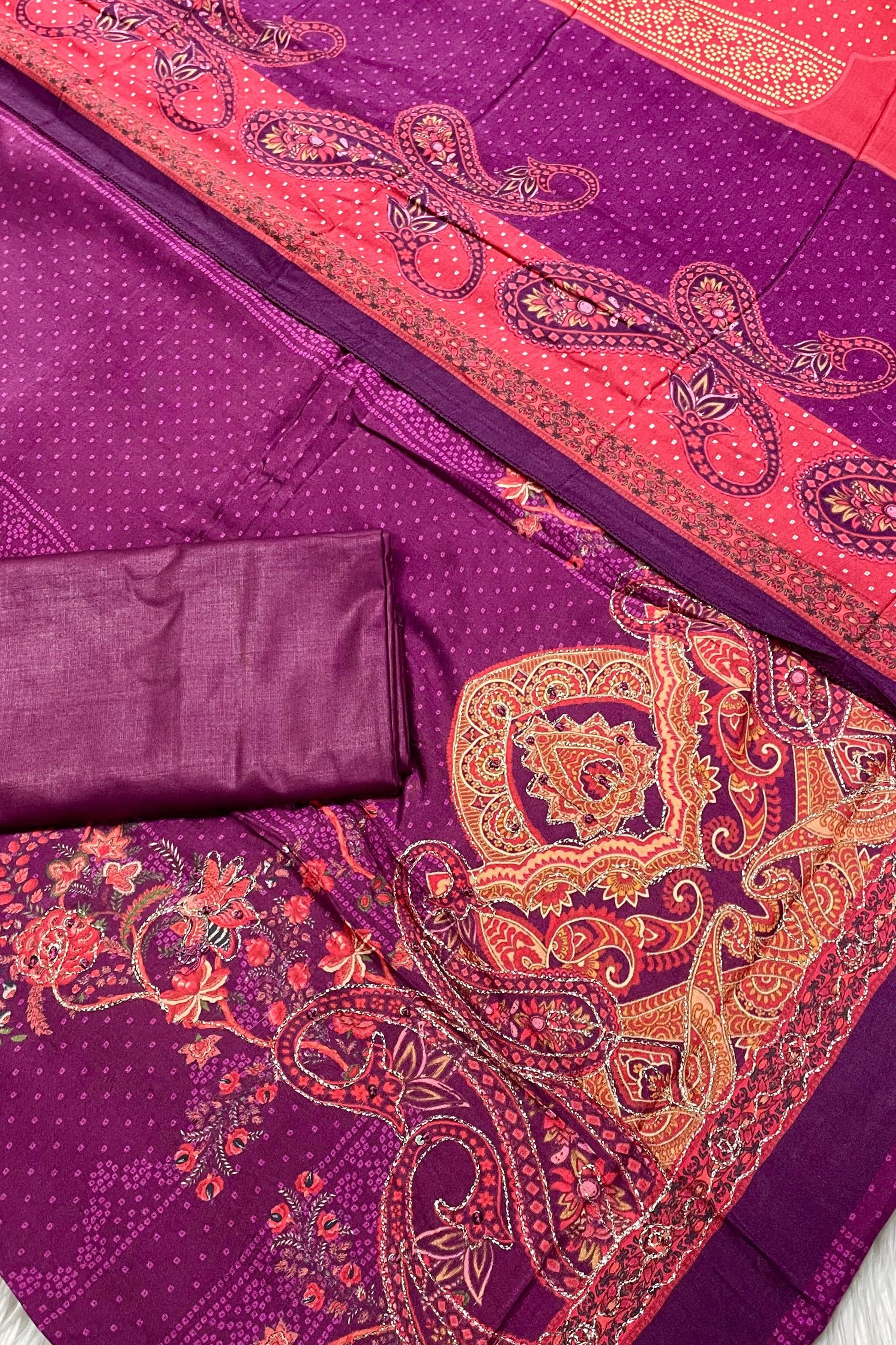 Fabric Description : 3 Piece Un-Stitched Free Size Collection By Ali Colours Come With:-