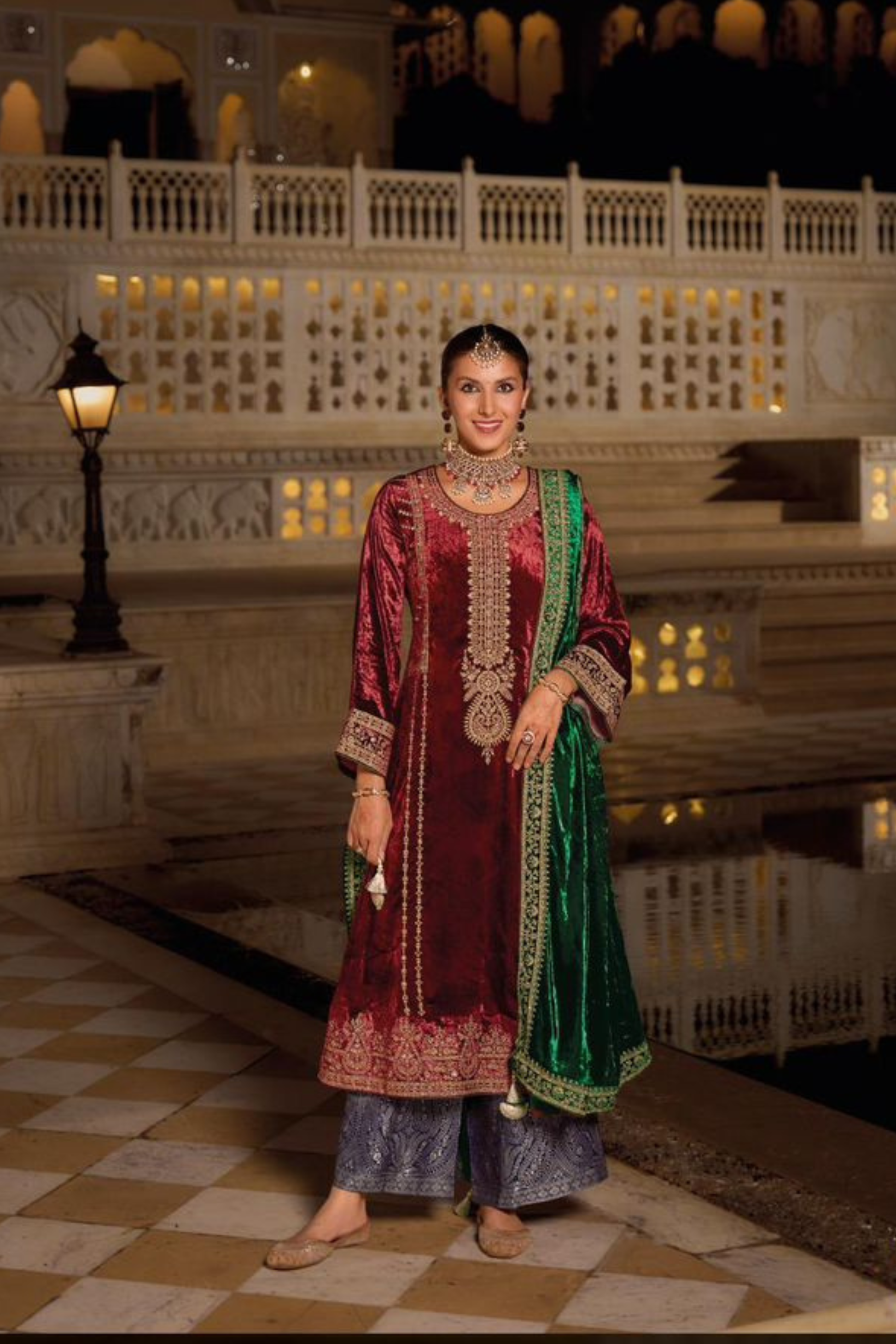 Dupatta : Extremely Soft Embroidered Velvet Designer Dupatta
