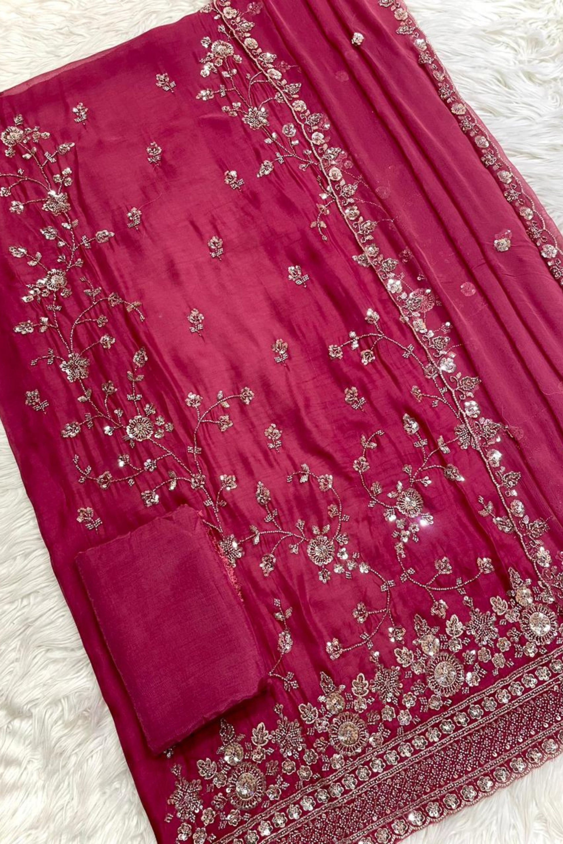 Top : Organza Shimmer Shirt With Full Heavy Handwork (kardana, moti, sequence) - 2.5 Meter