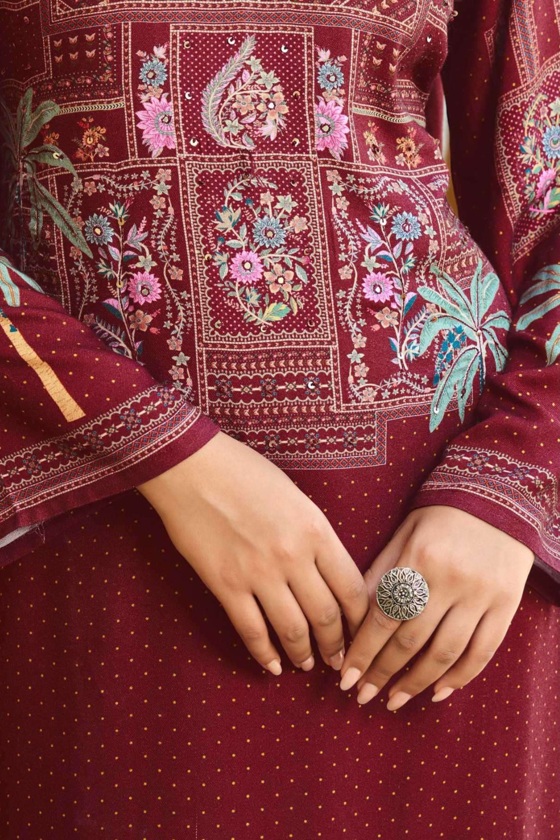 Top : Pure Jaam Satin Digital Printed With Fancy Handworks + Lace