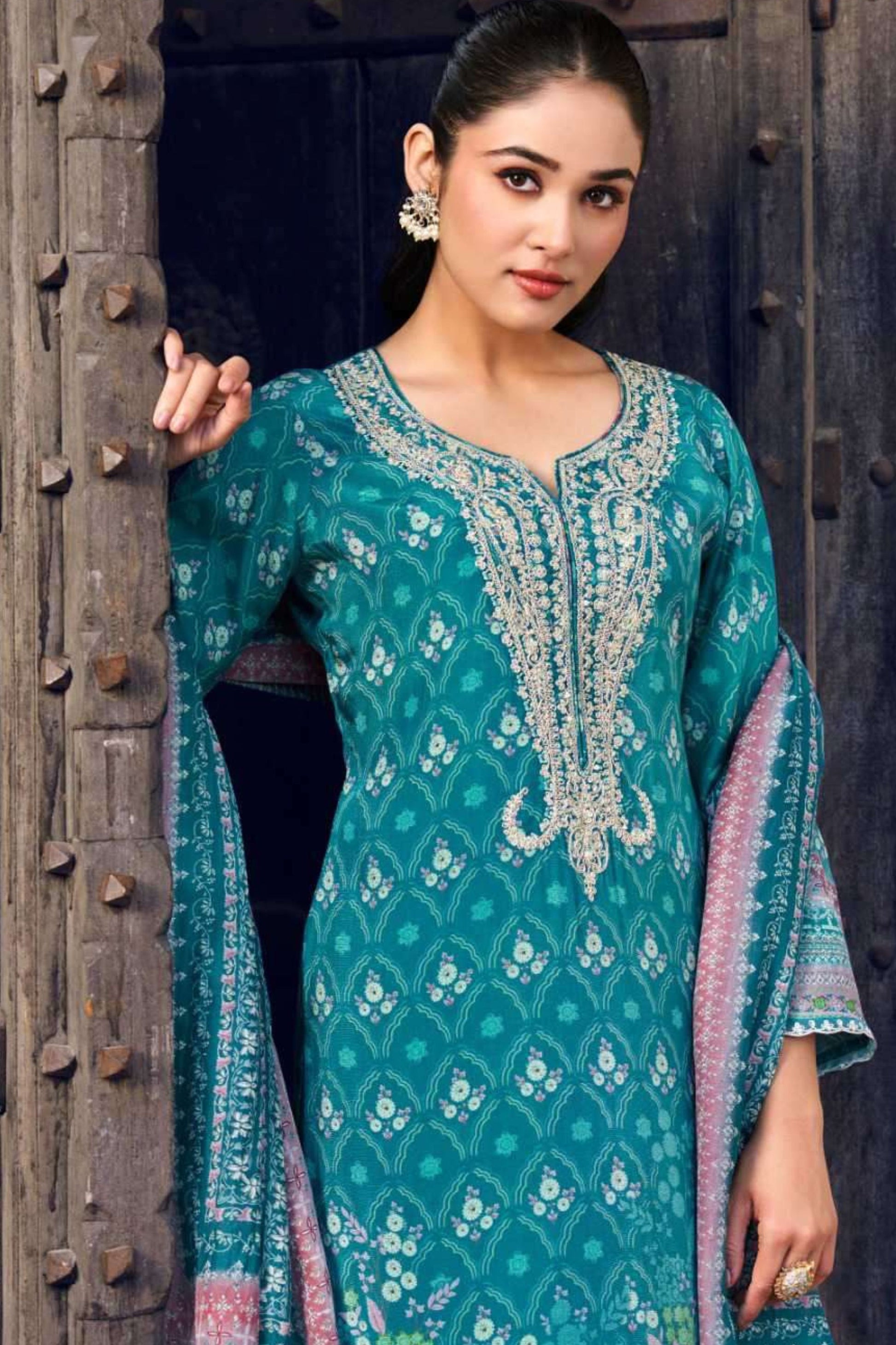 Top : Pure Muslin Digital Print (Embroidery Coding Work on V Neck+Organza Embroidery Coding Patch Work