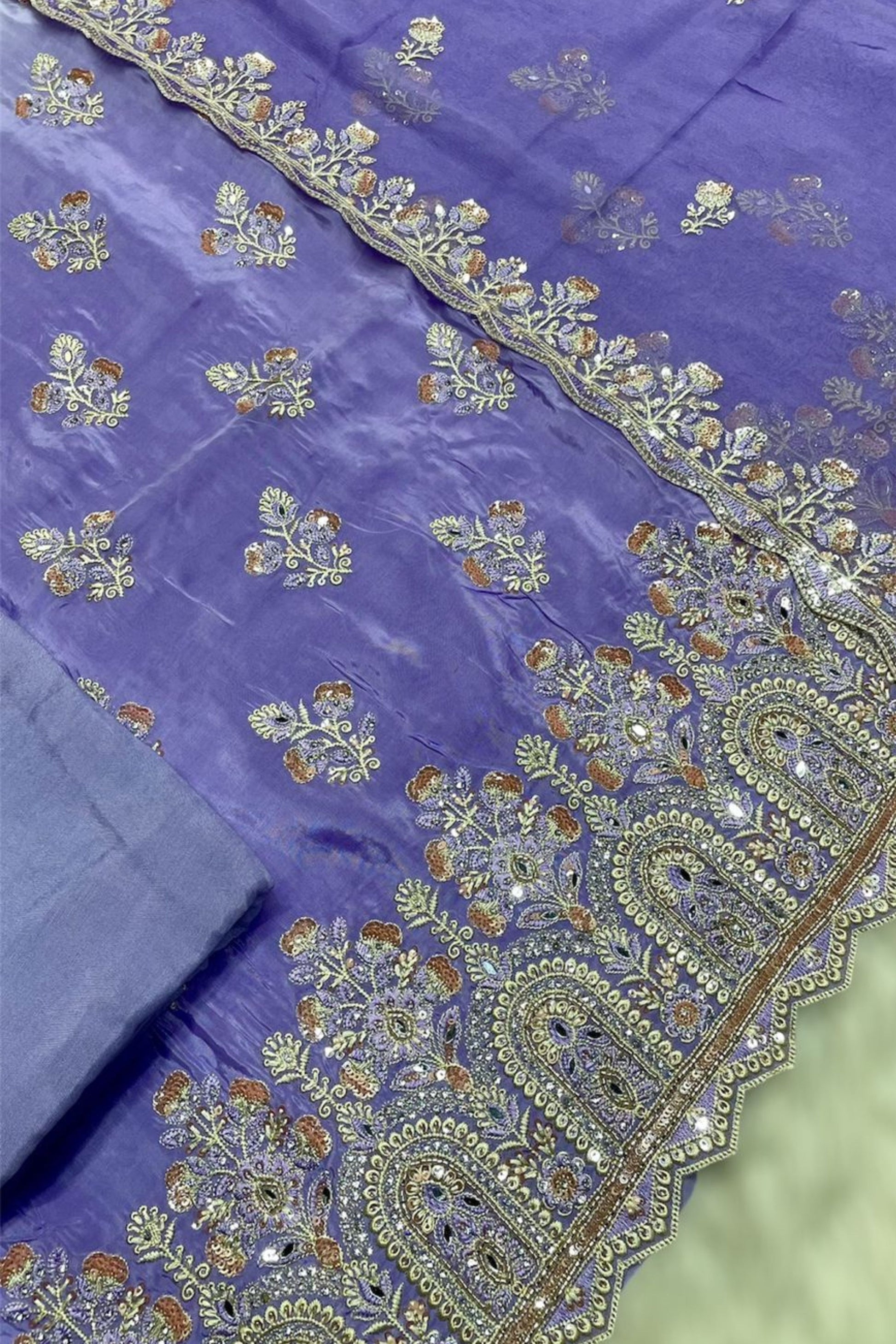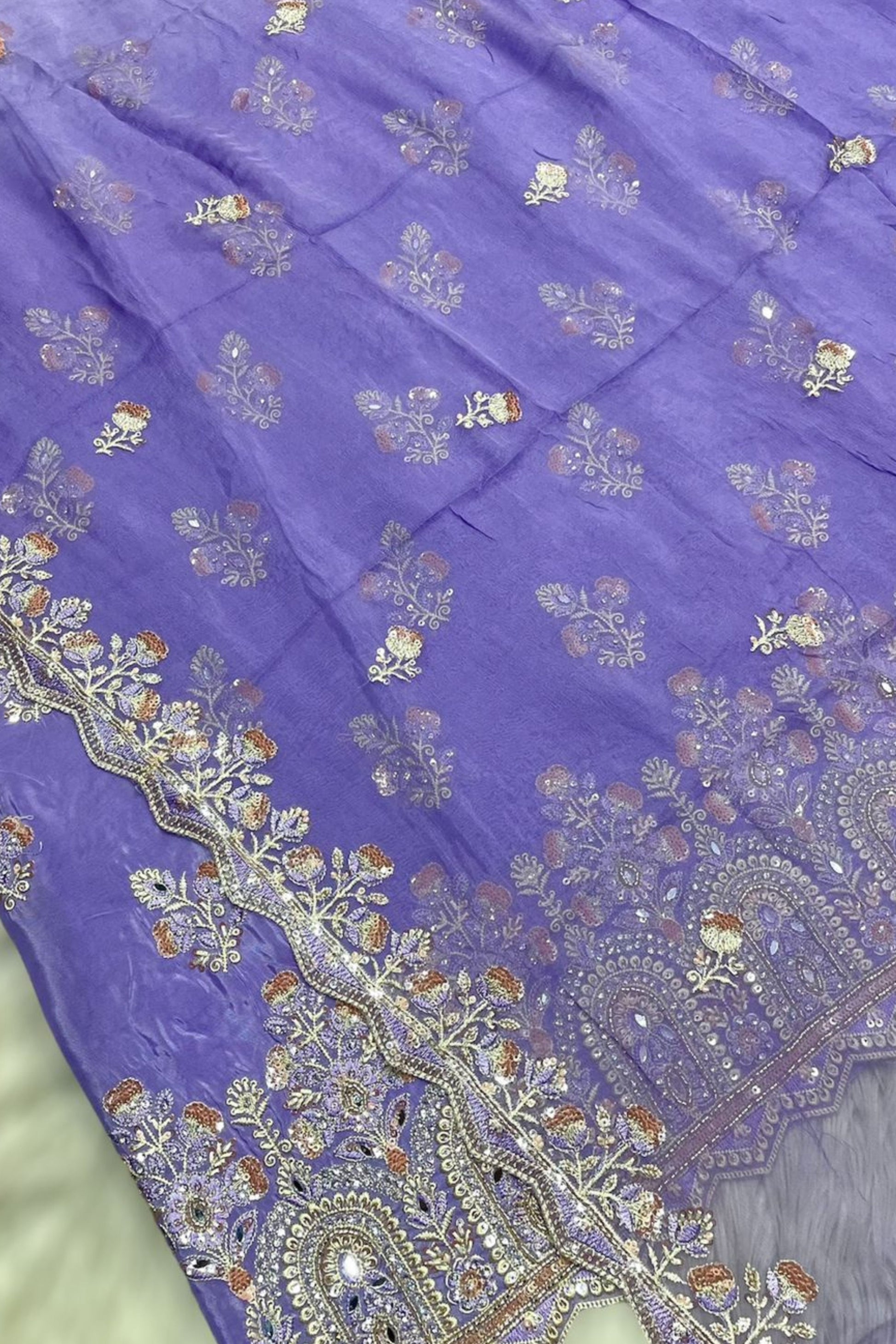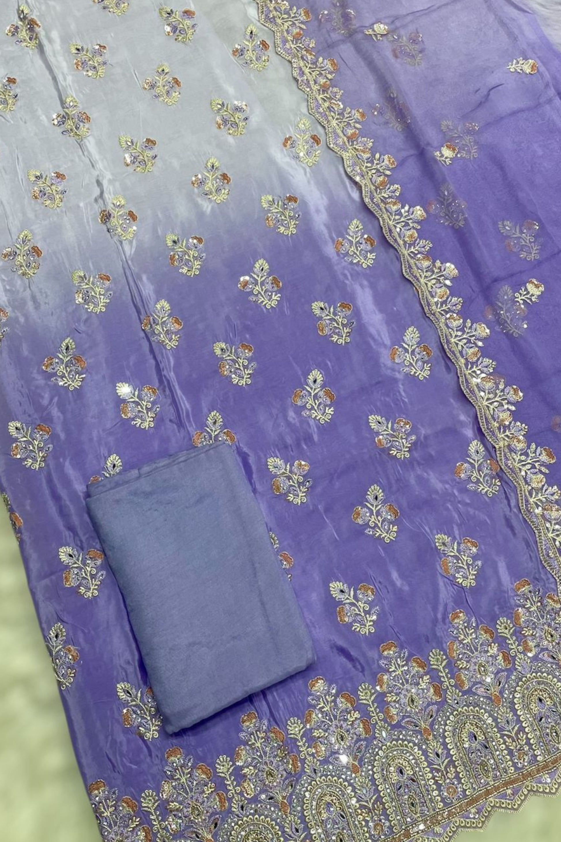 Dupatta: Lightweight chiffon with subtle embellishments, adding a flowy and refined touch to your outfit.
