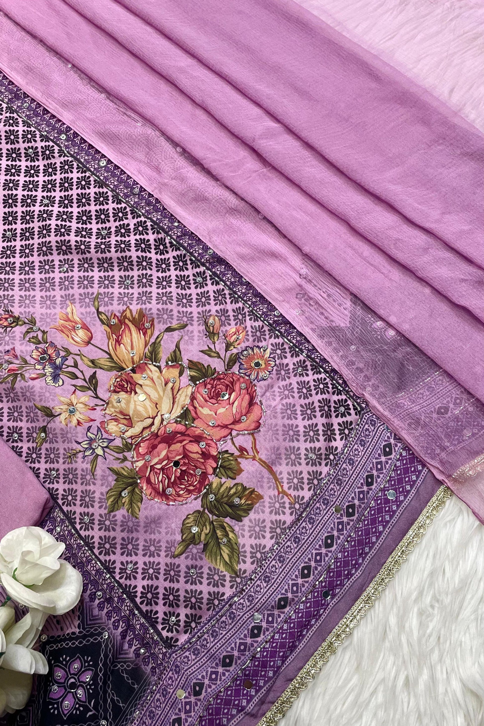 Top : Pure Muslin with Heavy Mirror and Cutdana Handwork with Digital print Shirt