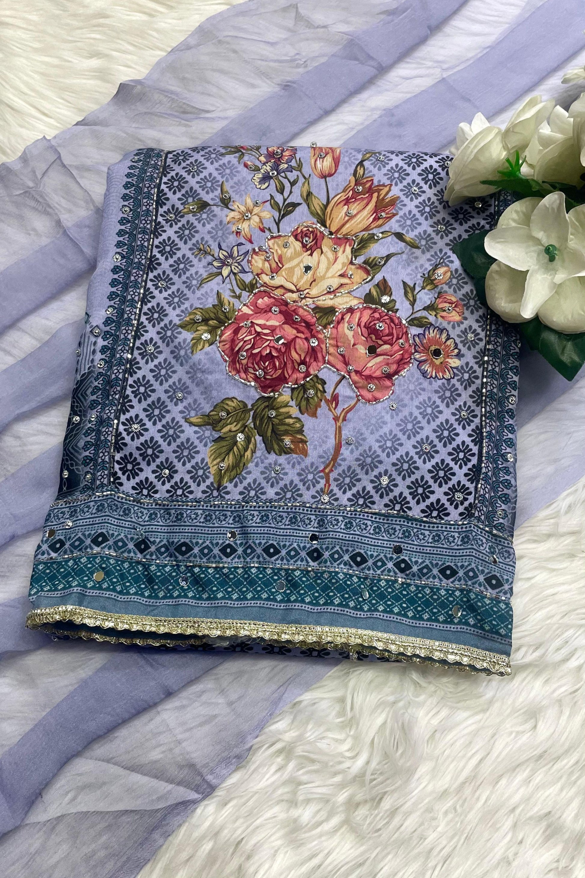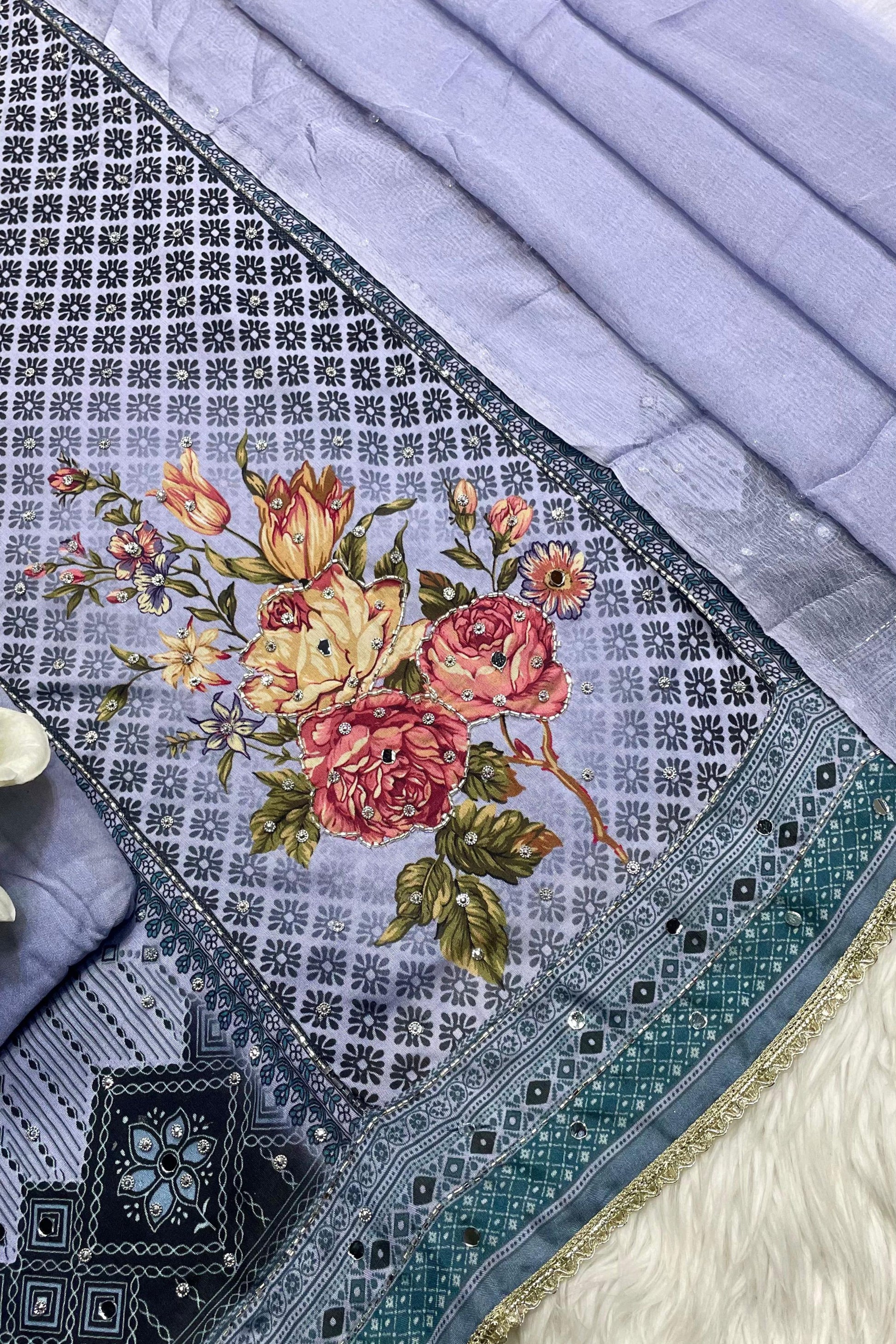 Top : Pure Muslin with Heavy Mirror and Cutdana Handwork with Digital print Shirt