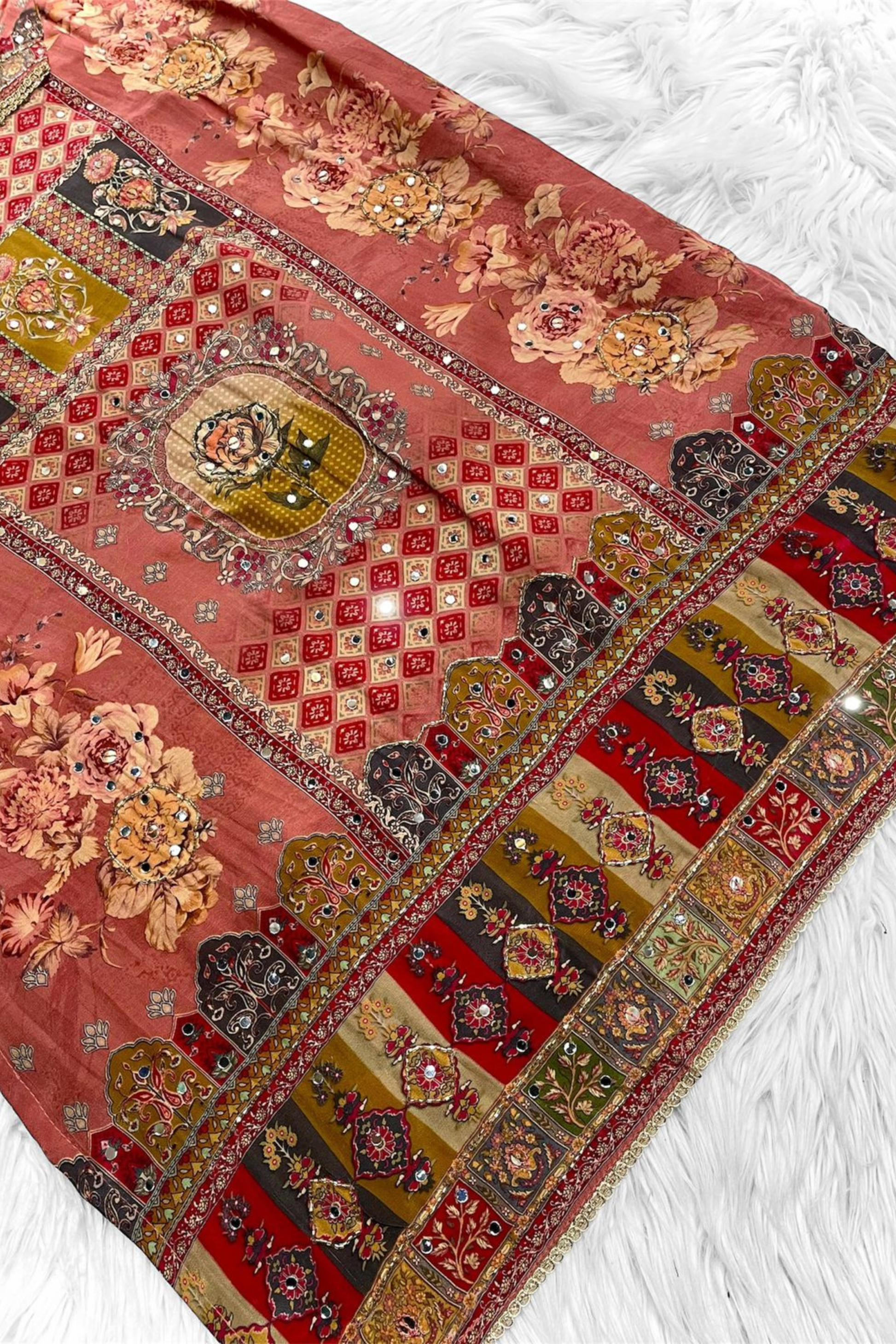 Top : Designer Printed Top with Rich Floral Detailing and Subtle Mirror Highlights