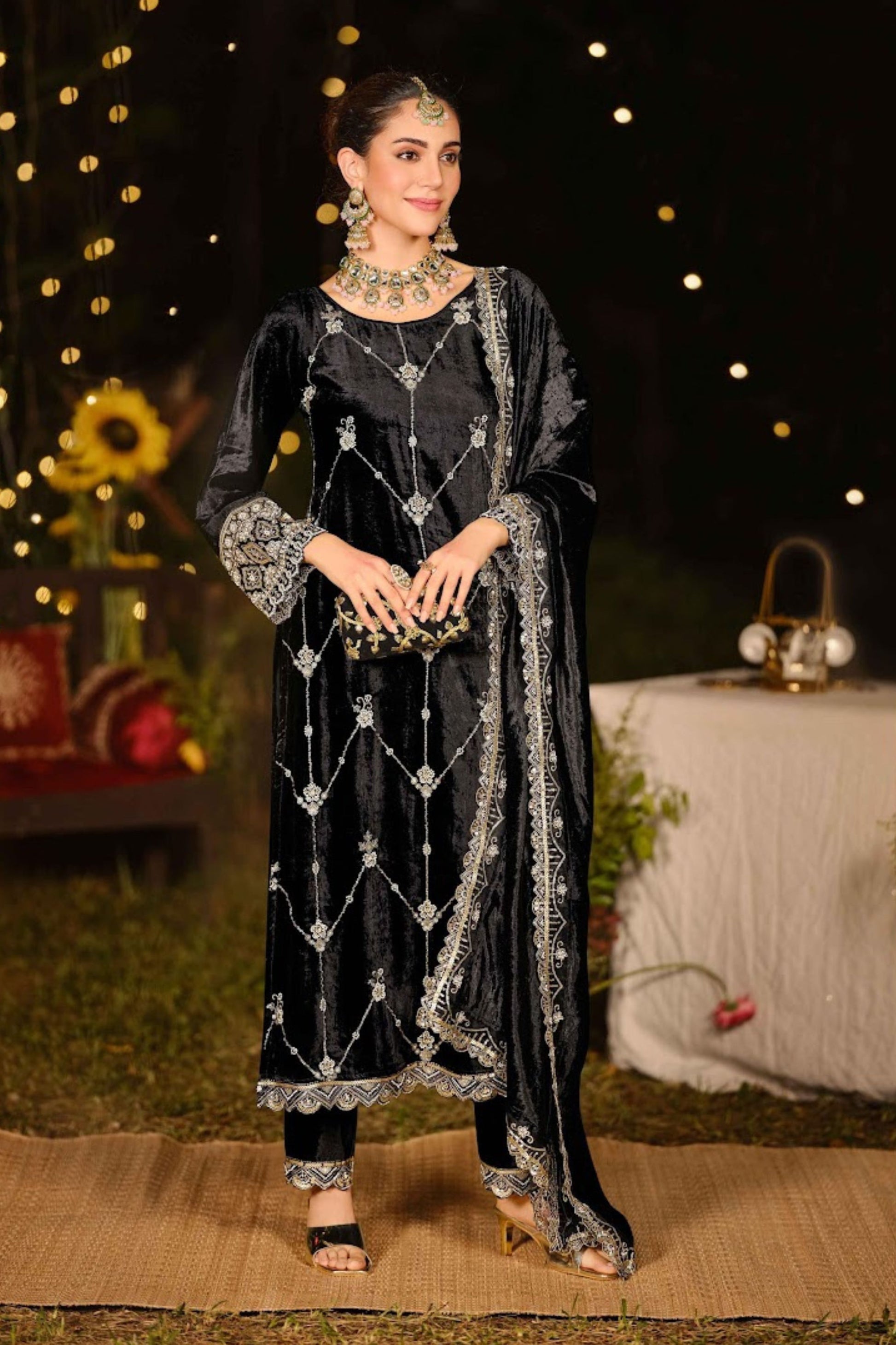 Top : Pure Viscose Velvet With Designer Handmade Embroidered On Front ,Back, Sleeves and Daaman