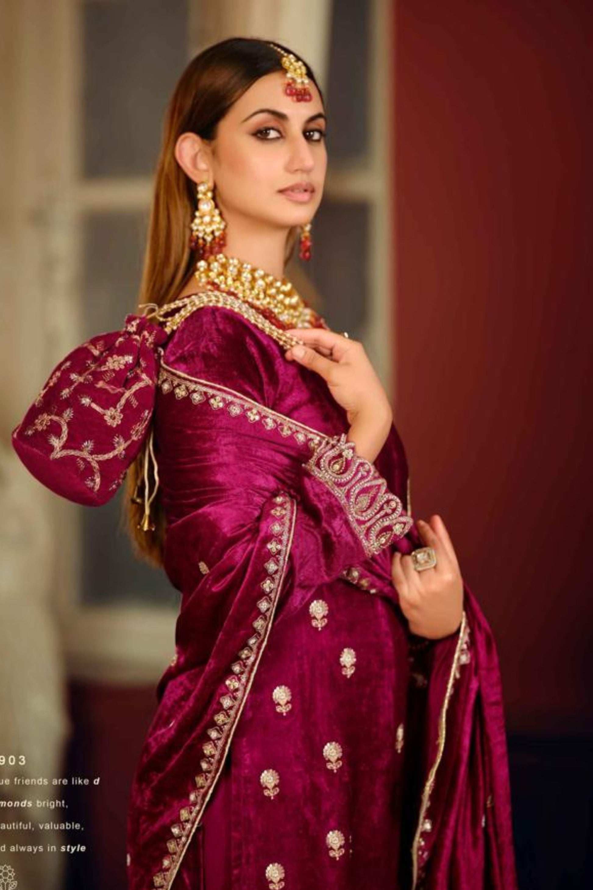 Top : Pure Viscose Velvet With Heavy Beads Embroidery
