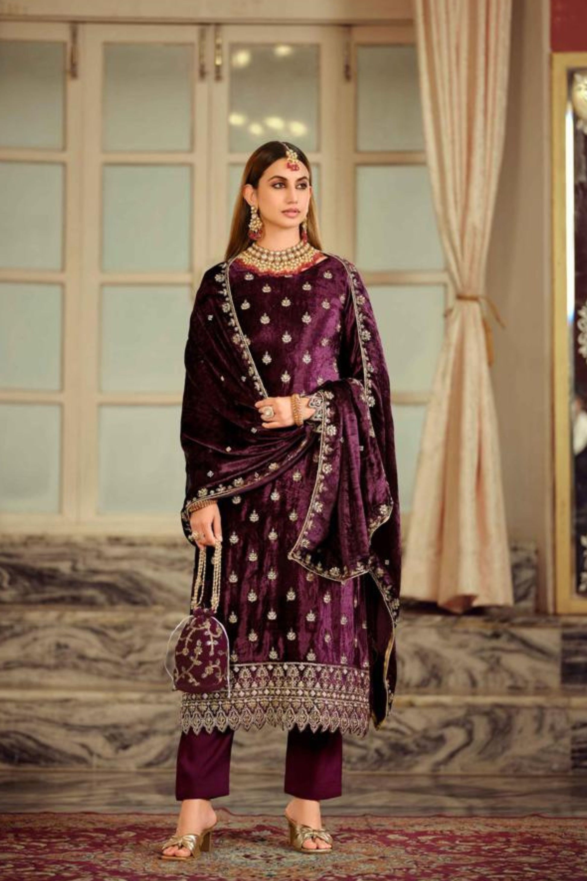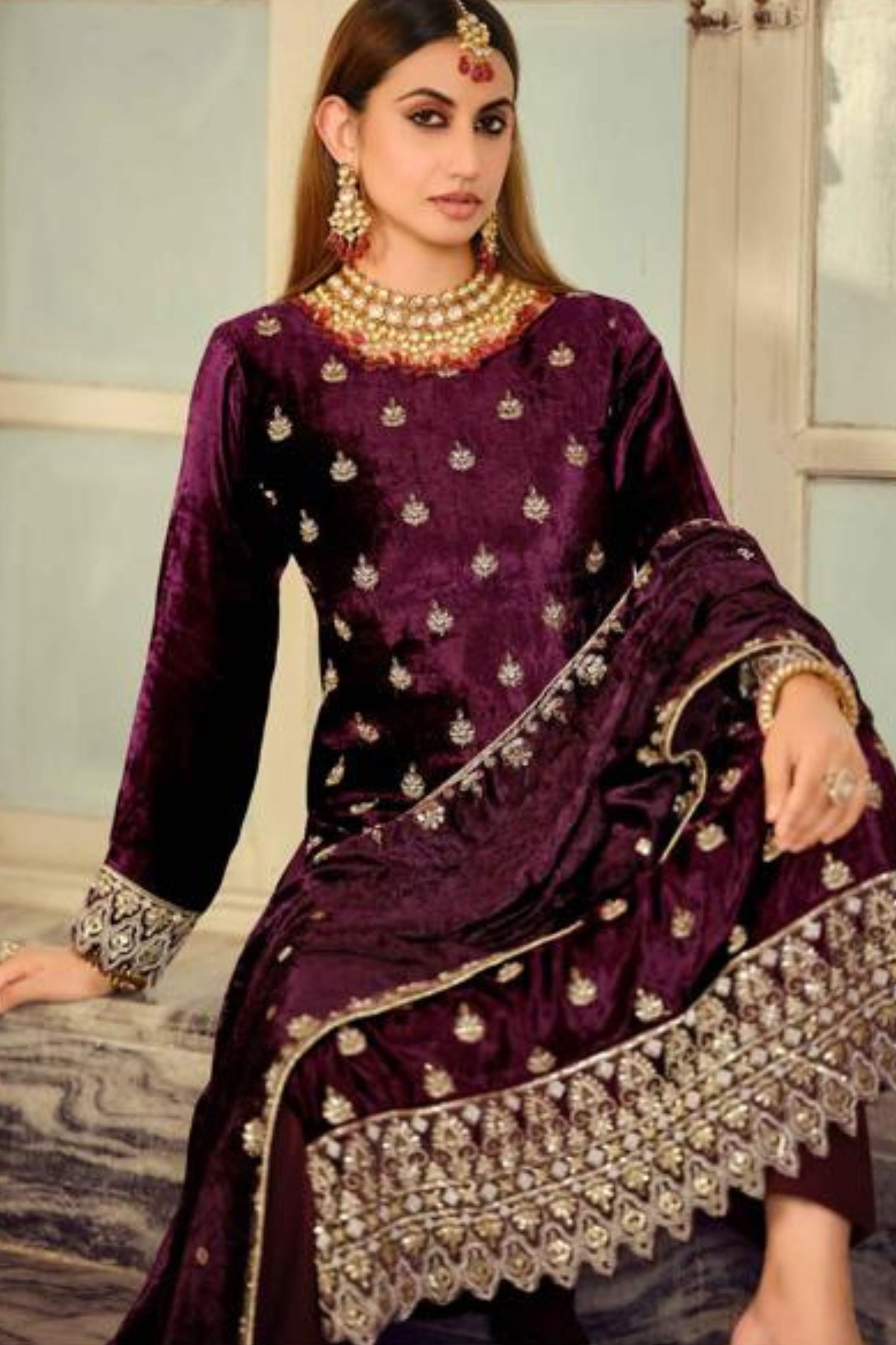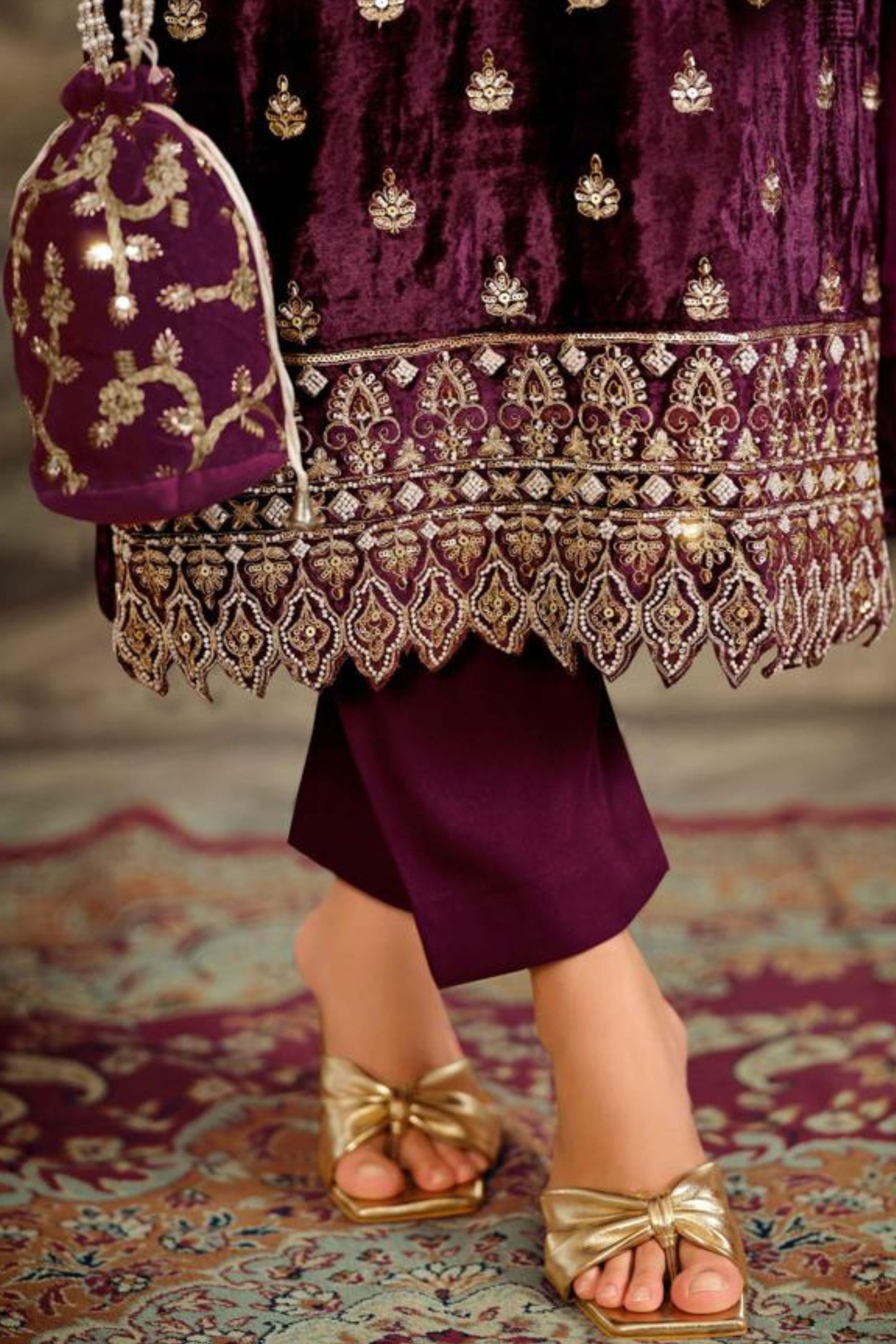 Top : Pure Viscose Velvet With Heavy Beads Embroidery