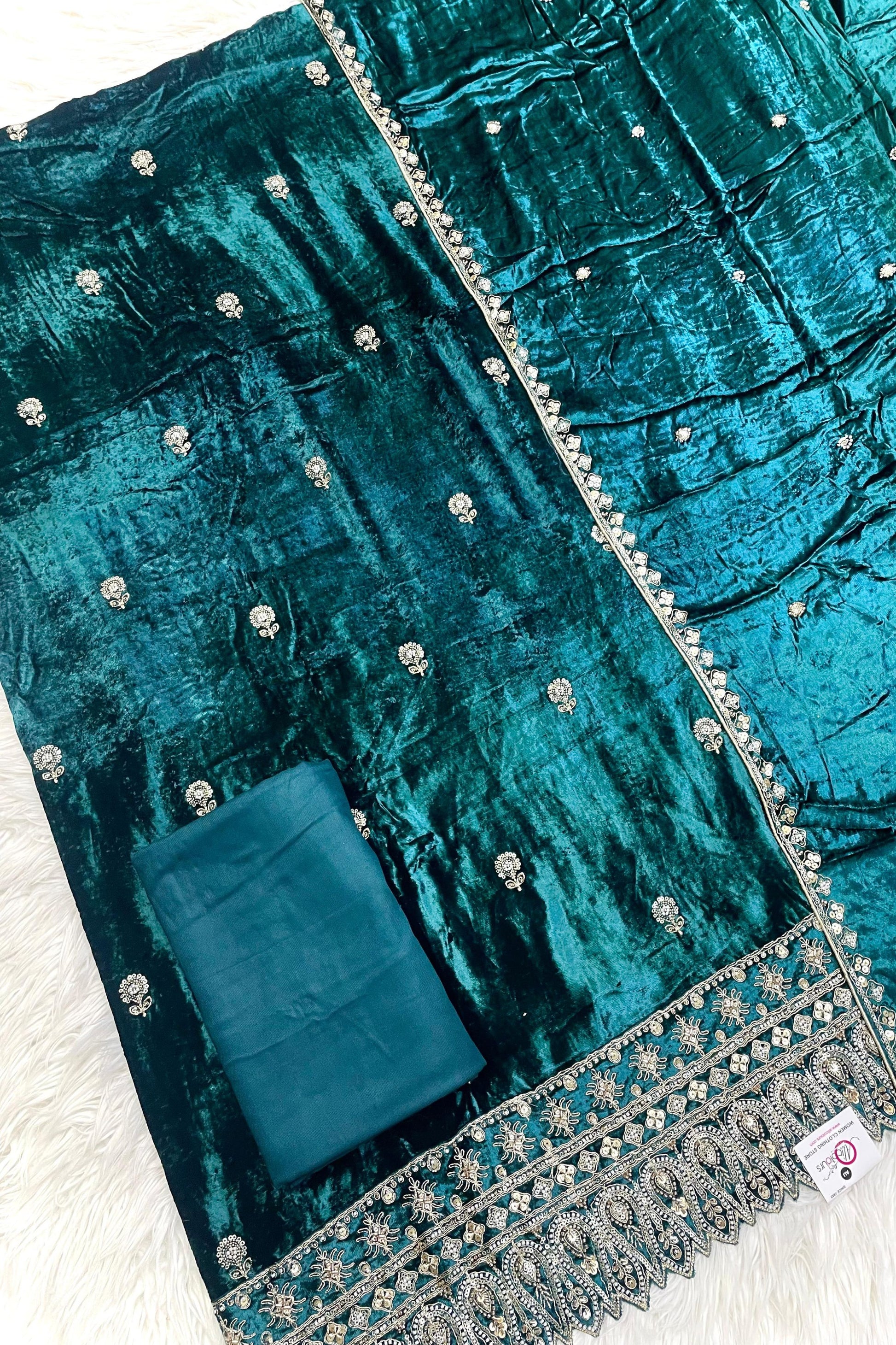 Dupatta : Pure viscose velvet with heavy beads embroidery