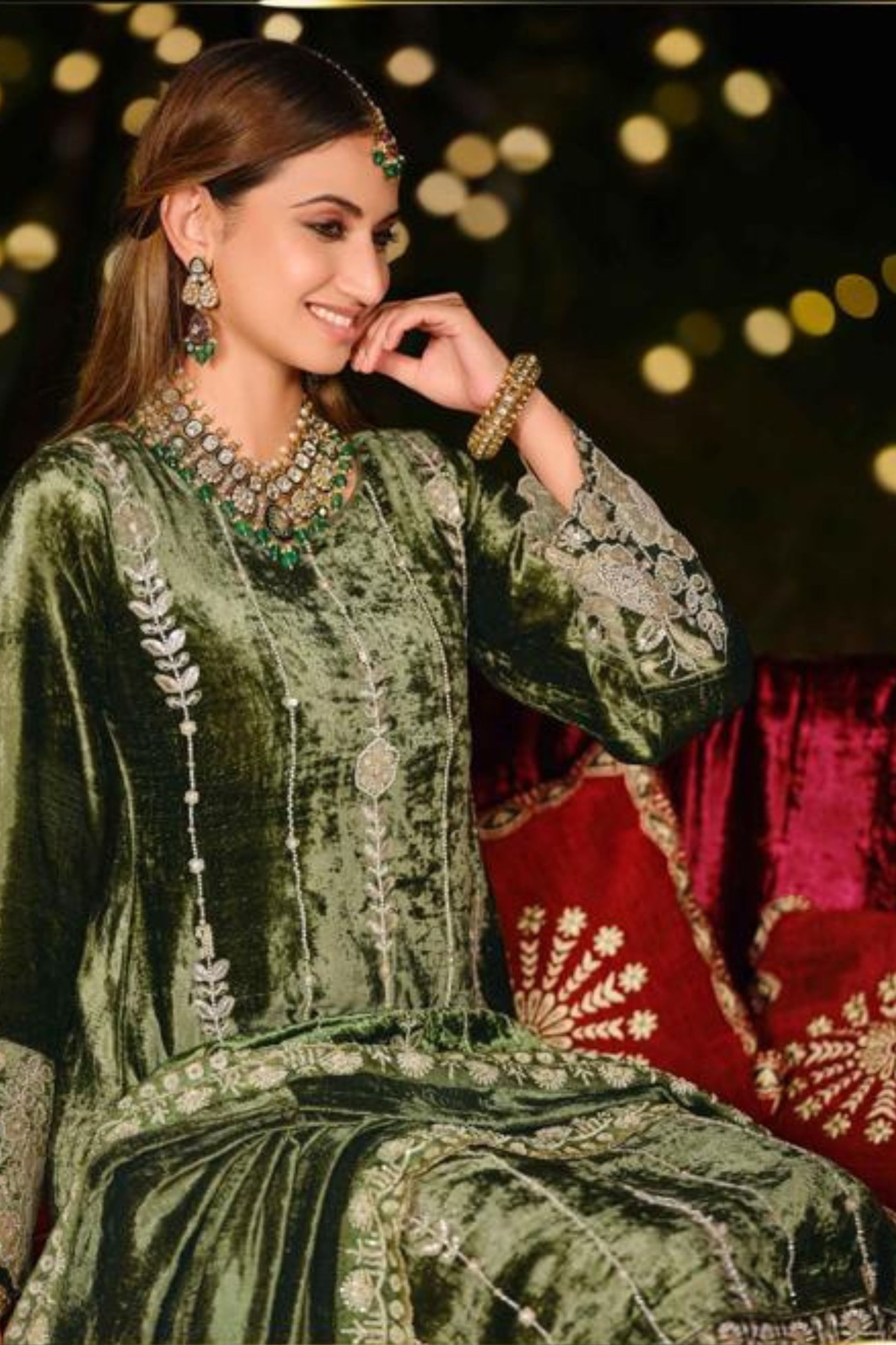 Top : Pure Viscose Velvet With Designer Handmade Embroidered On Front ,Back, Sleeves and Daaman