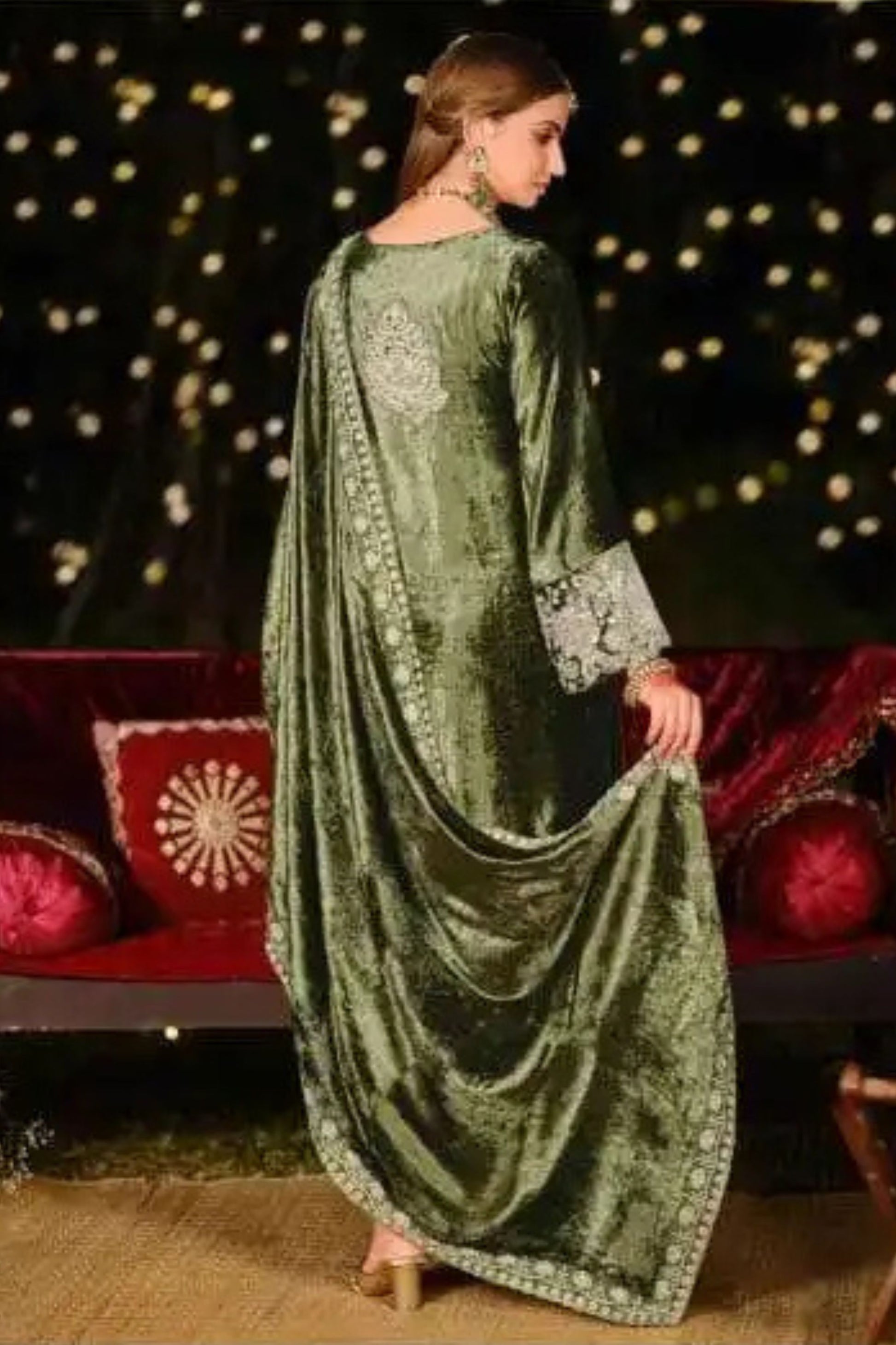 Top : Pure Viscose Velvet with Designer Handmade Embroidered on Front, Back, Sleeves & Daaman