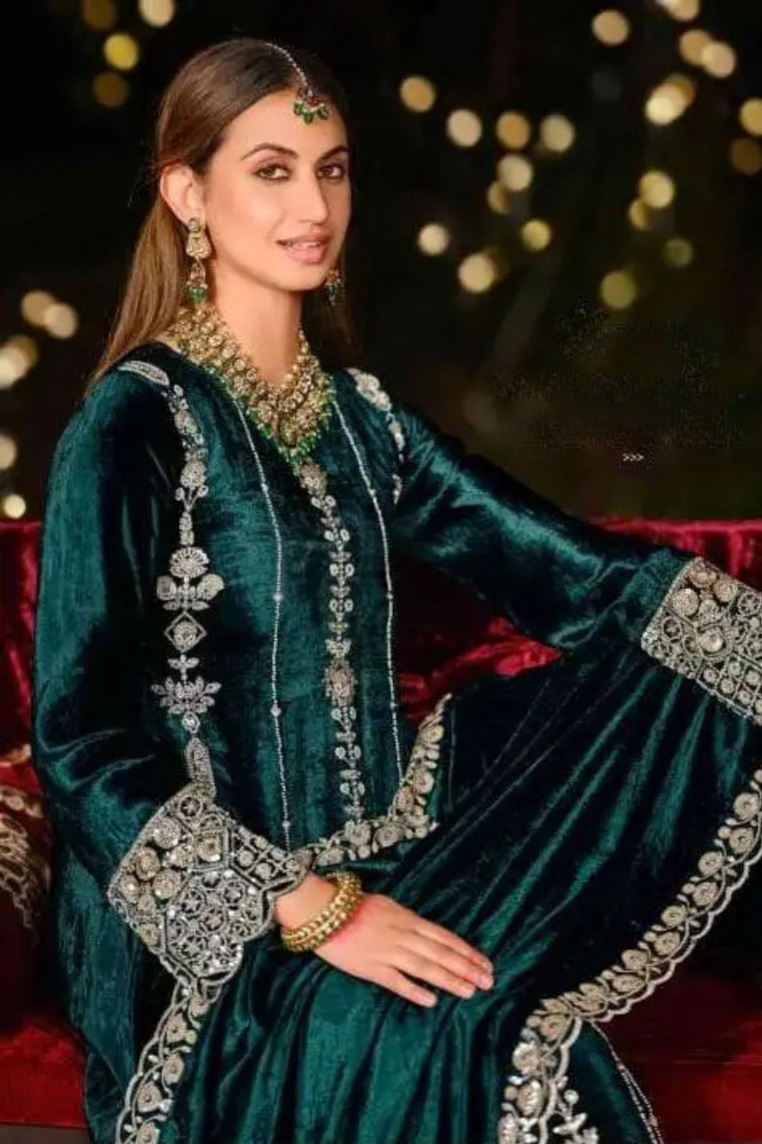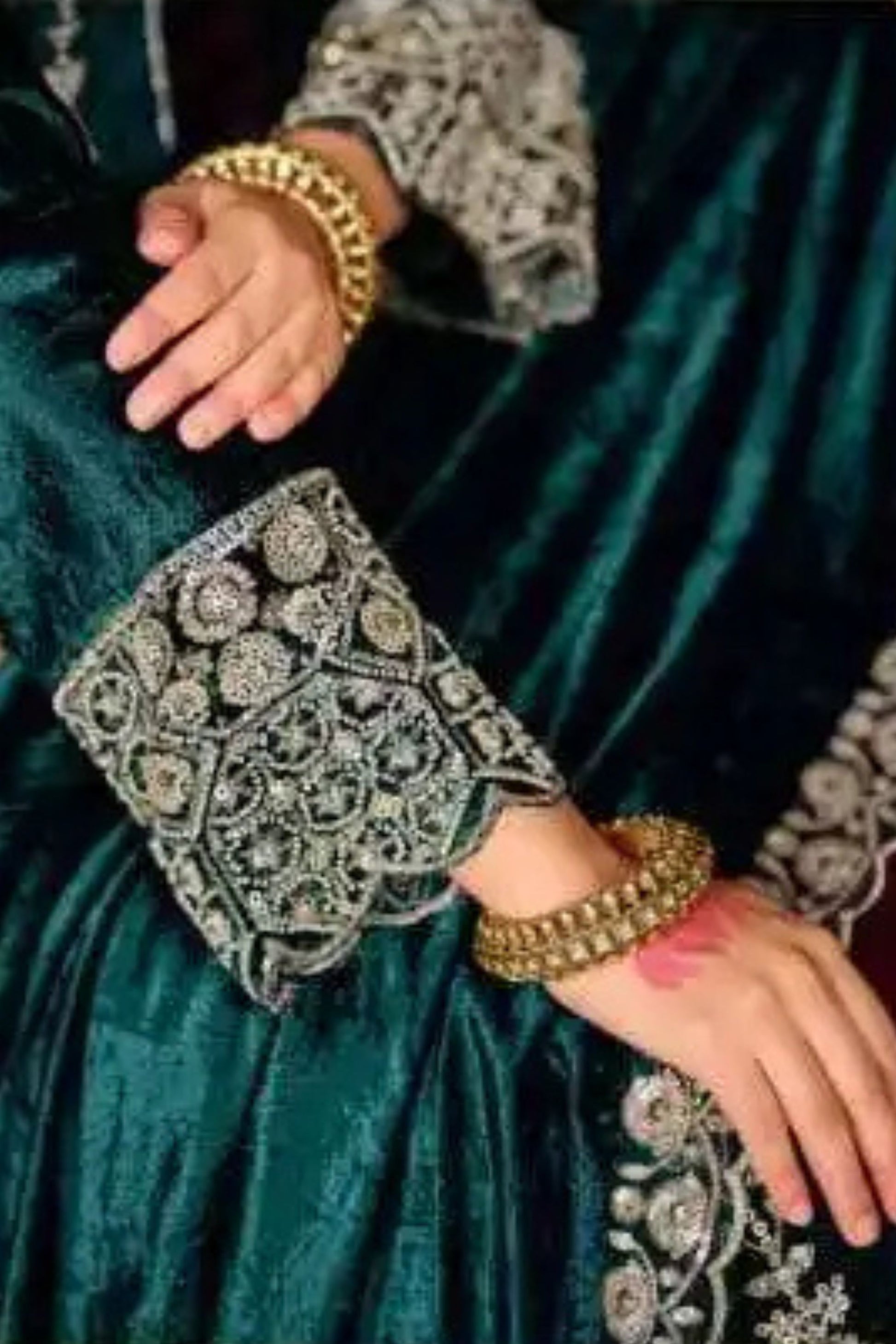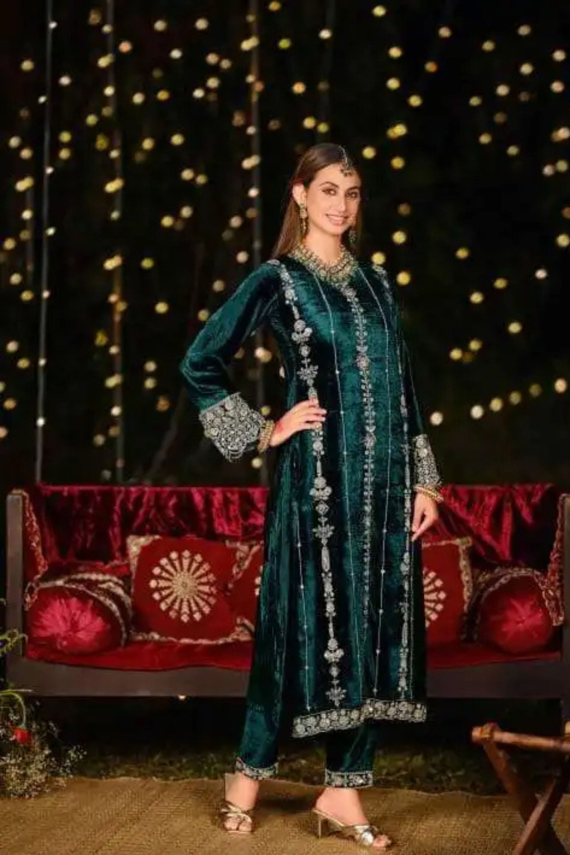 Top : Pure Viscose Velvet with Designer Handmade Embroidered on Front, Back, Sleeves & Daaman