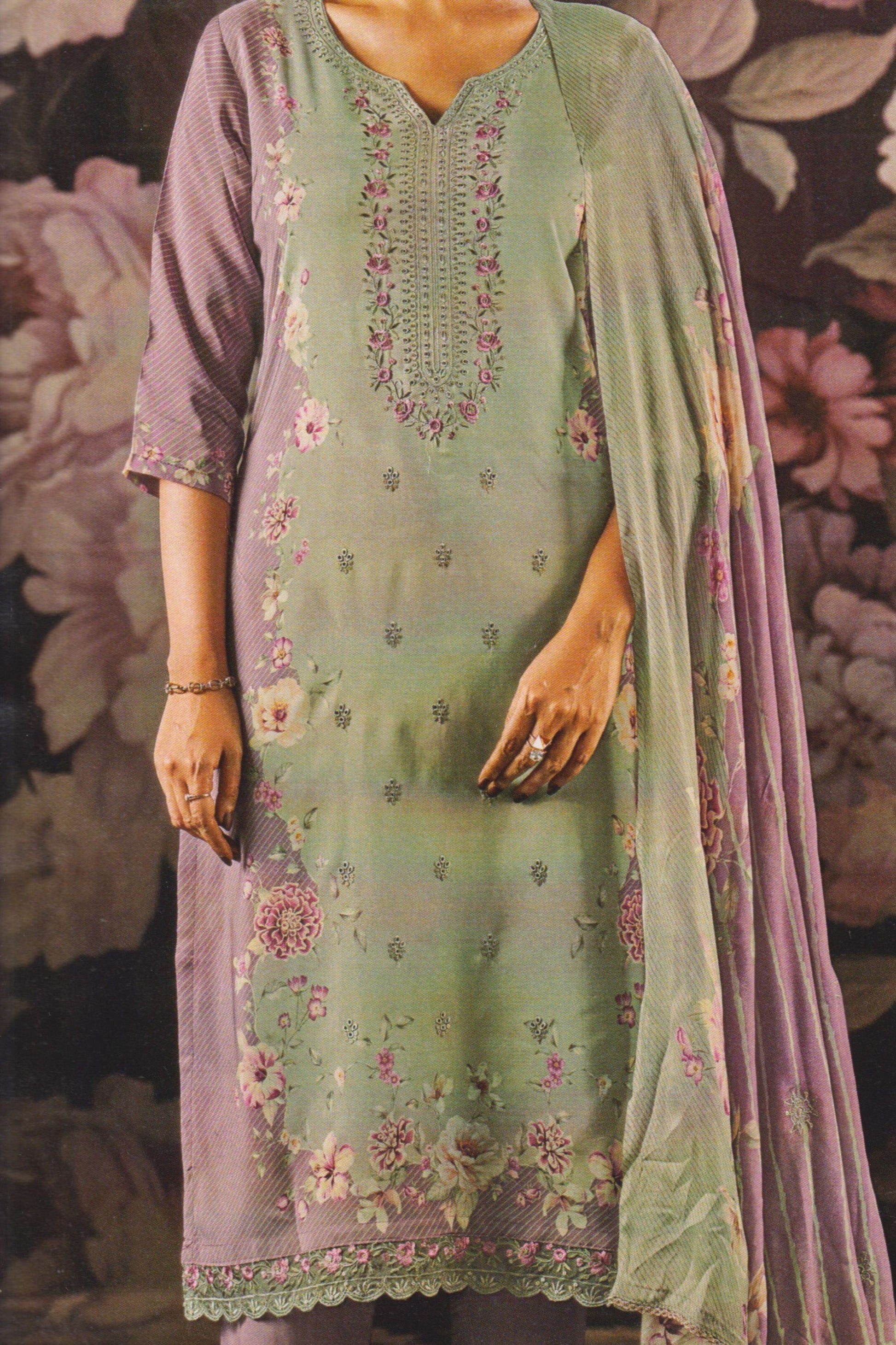 Dupatta : Pure Chinon Dupatta with Digital Print and 4 sided Lace.